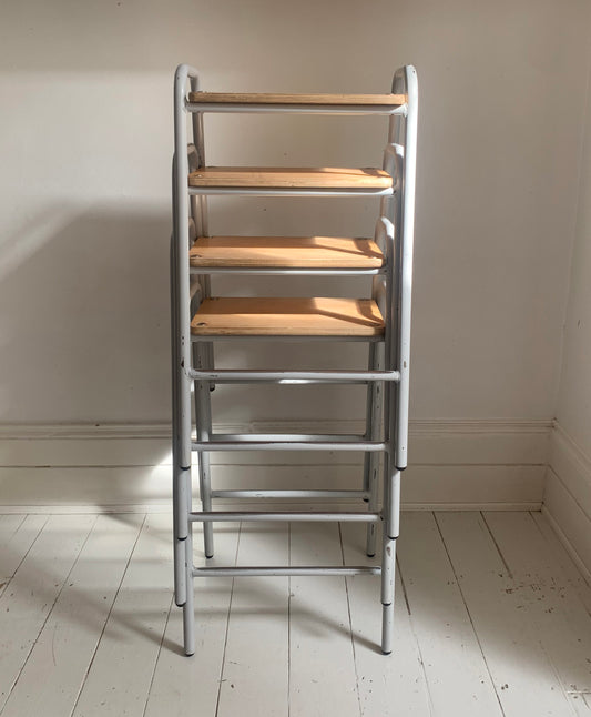 4 x Vintage School Stacking Stools - Ply Seats & Tubular Metal Frame