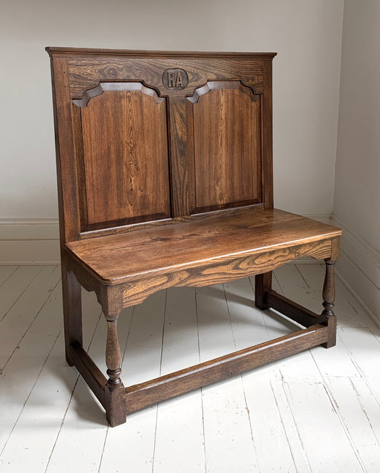 Antique Oak Panelled Back Settle Without Arms with RA Initial CarvingRegular price From £475.00 GBPRegular priceUnit price per-