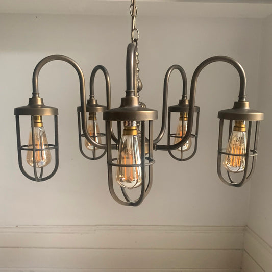 Five Arm Chandelier Pendant Light, Caged Filament Bulbs, Industrial, Steam PunkRegular price From £335.00 GBPRegular priceUnit price per-