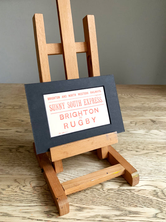 Vintage 'Brighton, Rugby' Paper Luggage Label, Mounted & Matted, 6x4in, 15x10cm