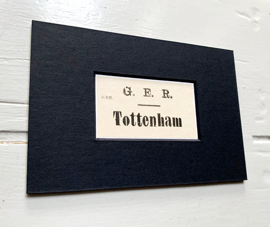 Vintage 'Tottenham' Paper Luggage Label / Mounted & Matted - 6x4in / 15x10cm