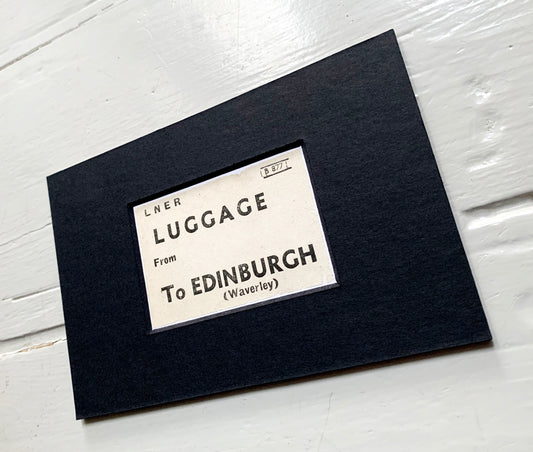 Vintage 'Edinburgh' Paper Luggage Label / Mounted & Matted - 6x4in / 15x10cm