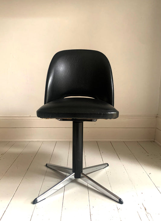 Mid Century Modern Black Vinyl Swivel Office / Dining Chair on Steel Legs