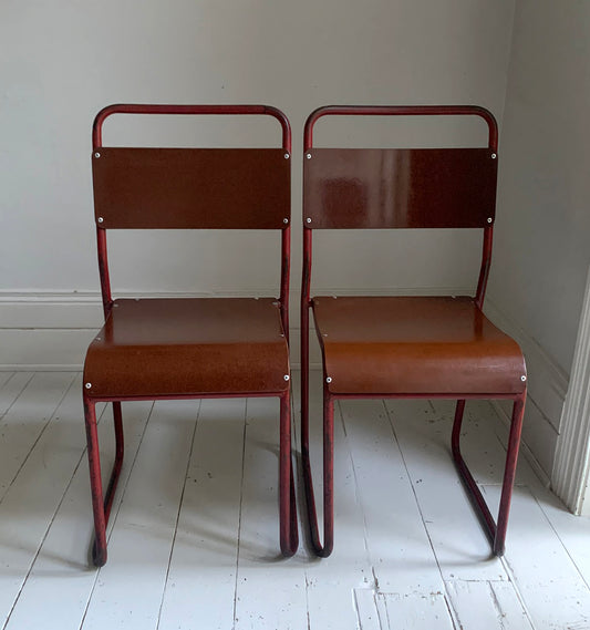 Vintage Cox Stacking Chairs; A Pair Tubular Steel Chairs with Rich Red Patina