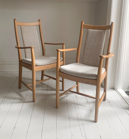 Pair of Ercol - Windsor - Penn Padded Back Dining Arm / Carver Chairs