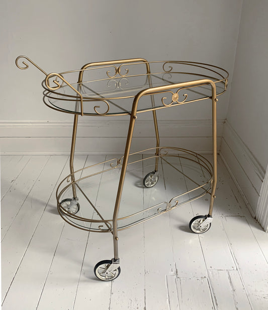 Mid Century Modern, Two Tier Brass Effect & Glass Cocktail Drinks Trolley Bar Cart
