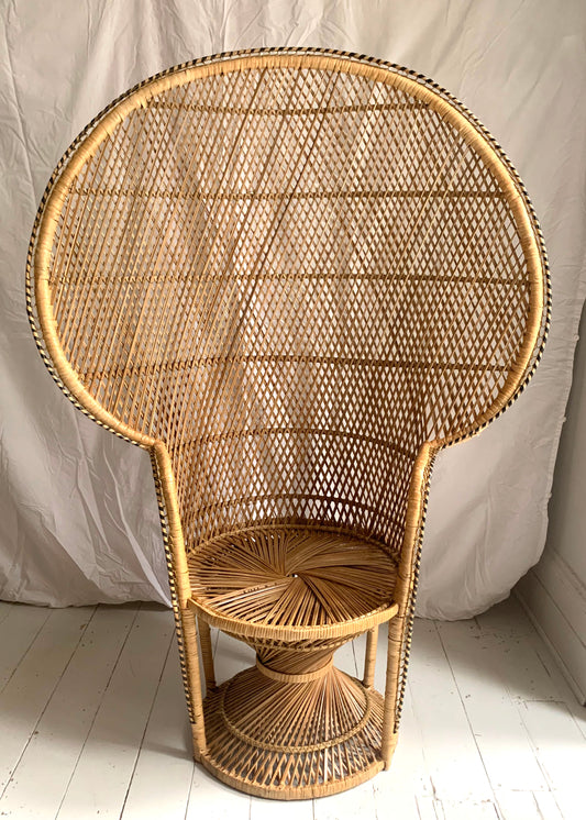 Vintage 1970s Large Rattan & Wicker Peacock Emmanuelle Chair with Twisted Base