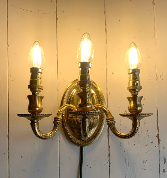 Pair Of Vintage Mod Dep Lamp Art Three Arm Brass Plated Wall Sconces