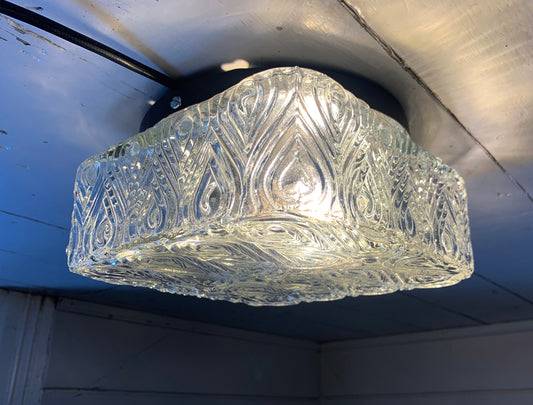 Vintage French Textured Square Glass Ceiling / Wall Light Shade