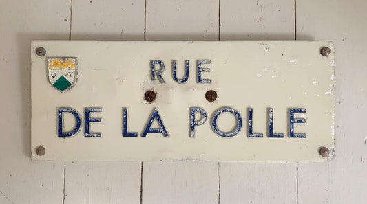 Rare Vintage French Street Sign 'Rue De La Polle' - Raised Letters On Metal