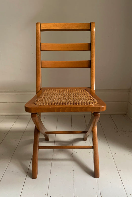 Vintage French Folding Wooden & Rattan Chair by Grange