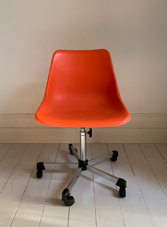 1 x Rare Vintage Hille Swivel Chair, In Orange on Castors, Designed By Robin Day