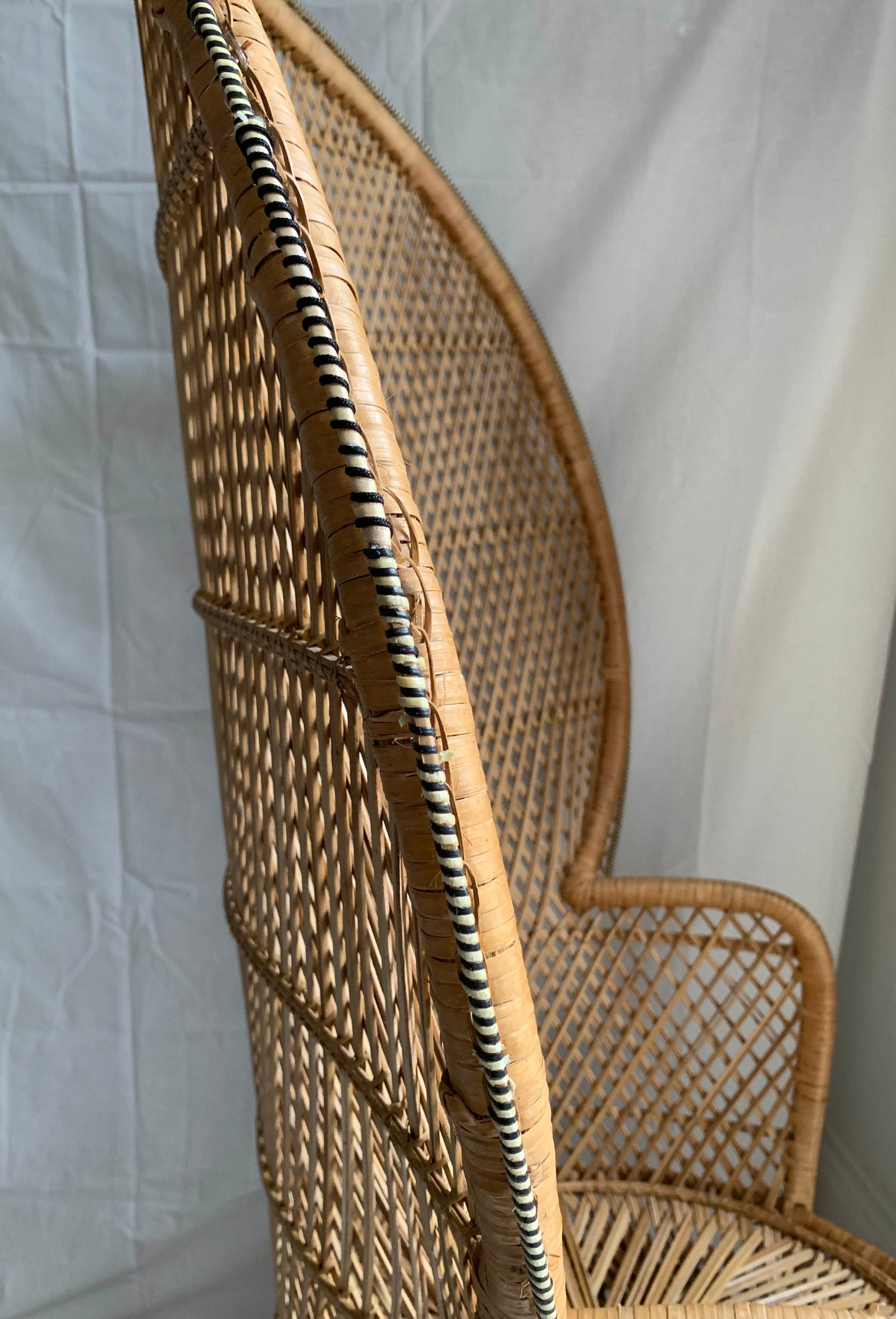 1970s Vintage Rattan & Wicker Peacock Chair Emmanuelle Mid Century Modern