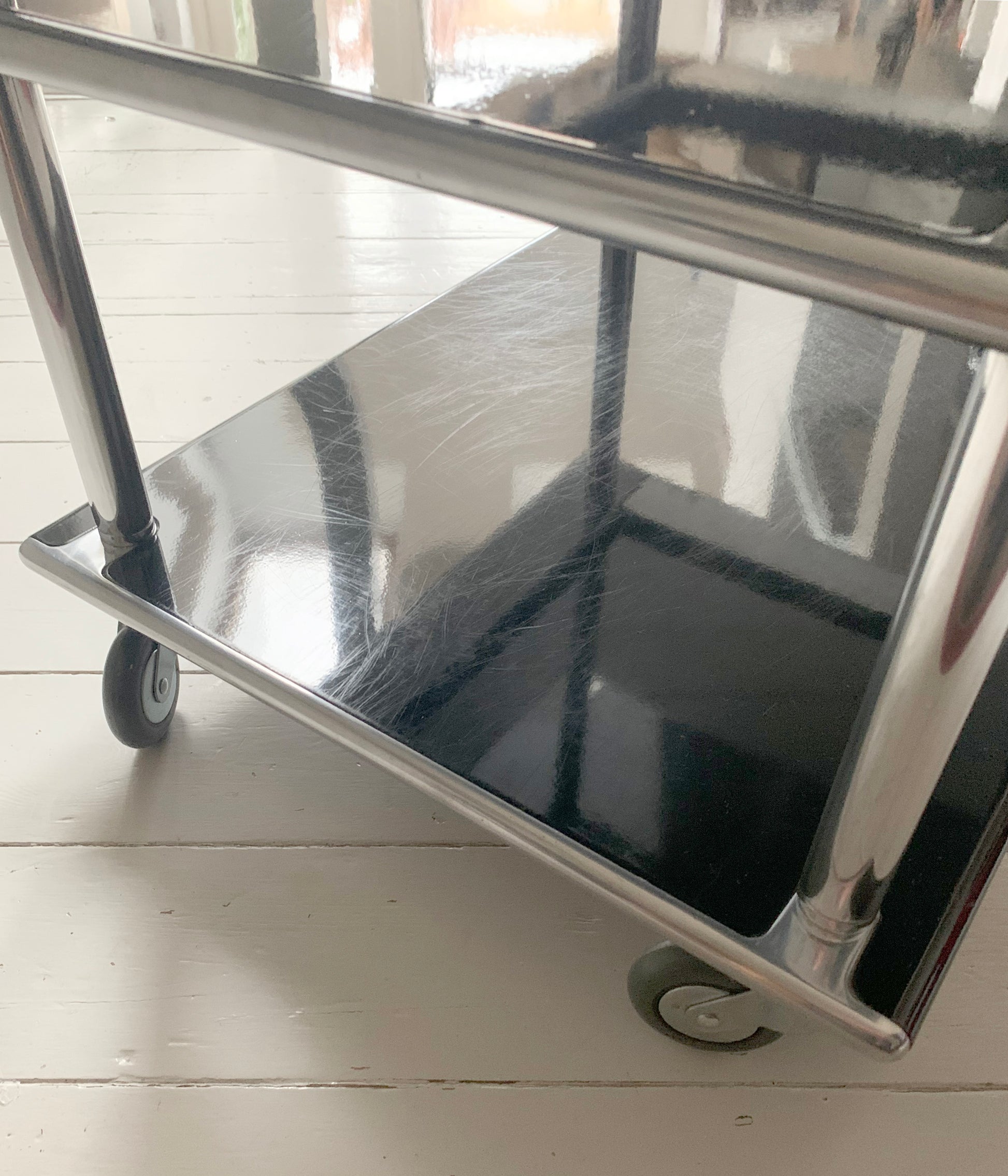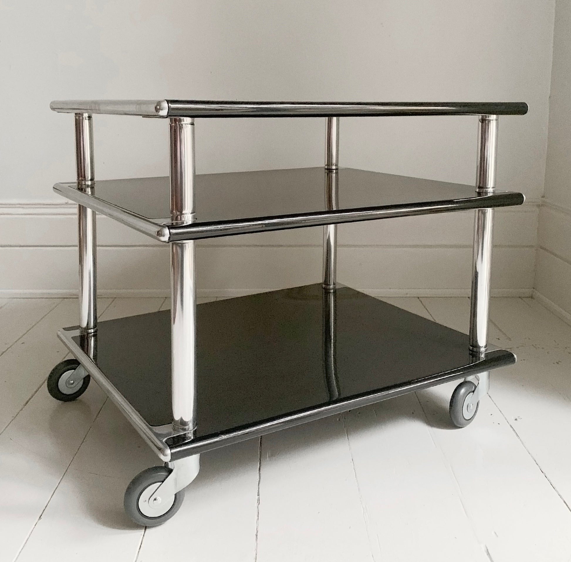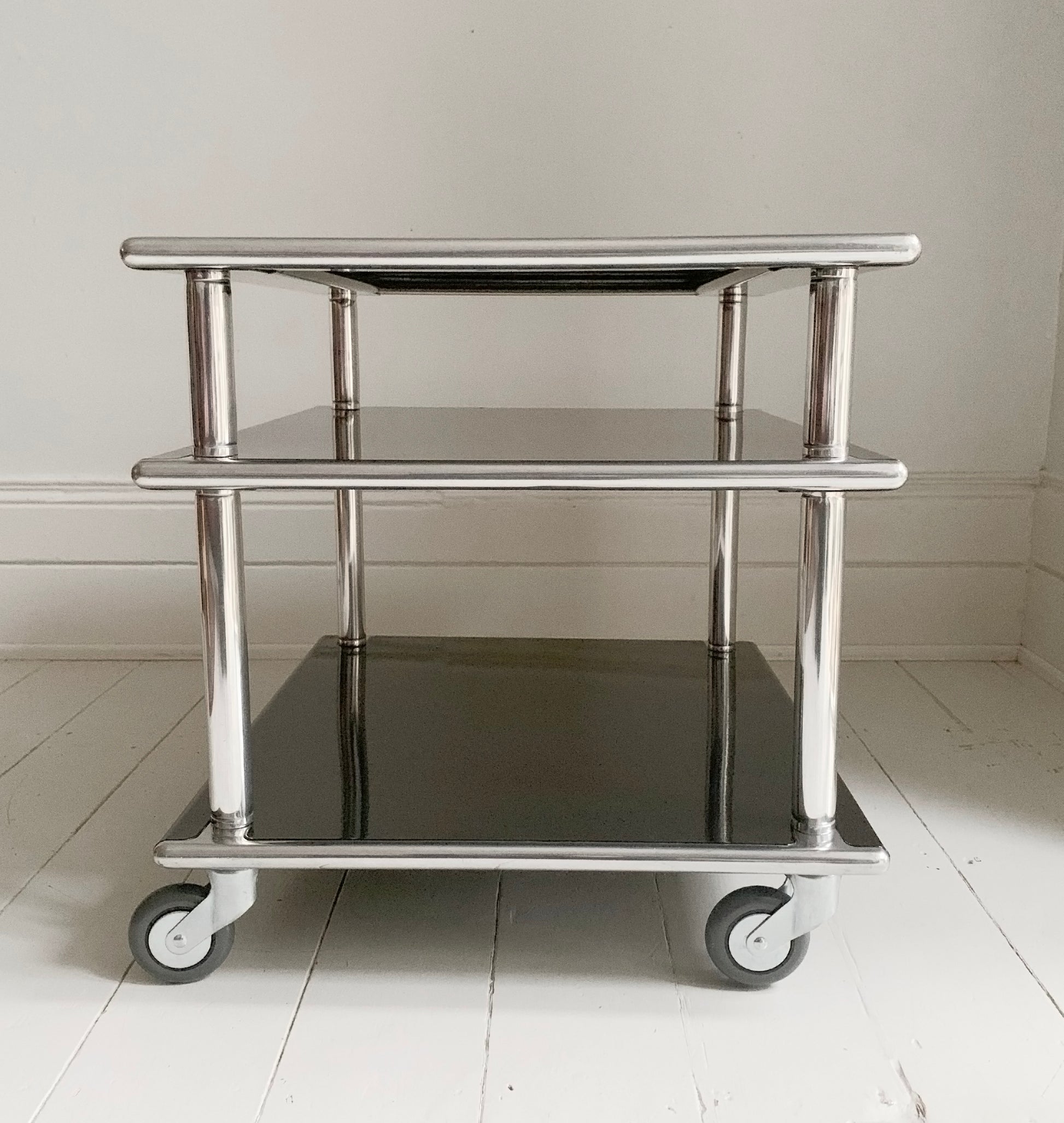 This shelving unit/trolley is in excellent condition and has been gently cleaned and polished giving it a beautiful high shine finish.