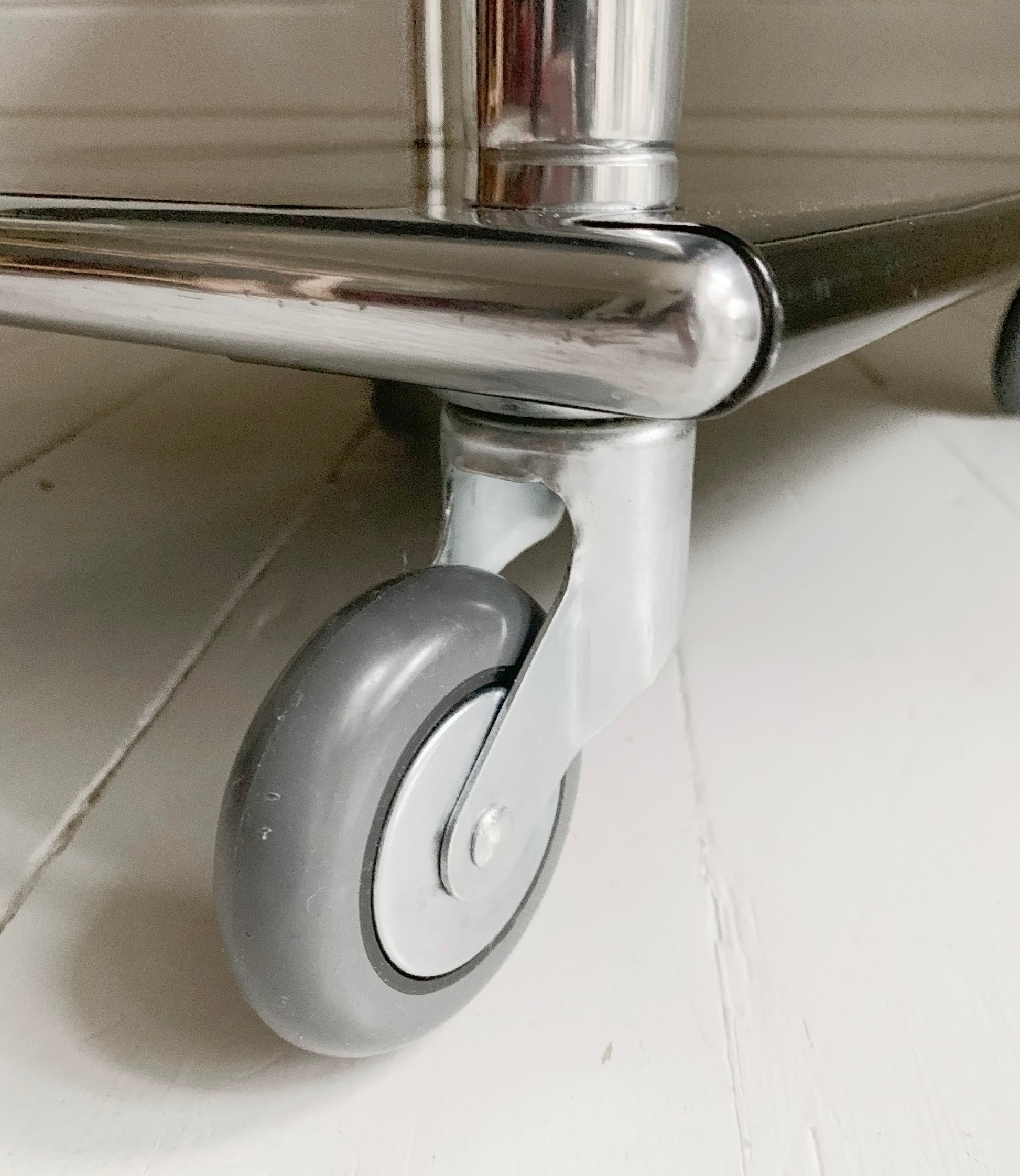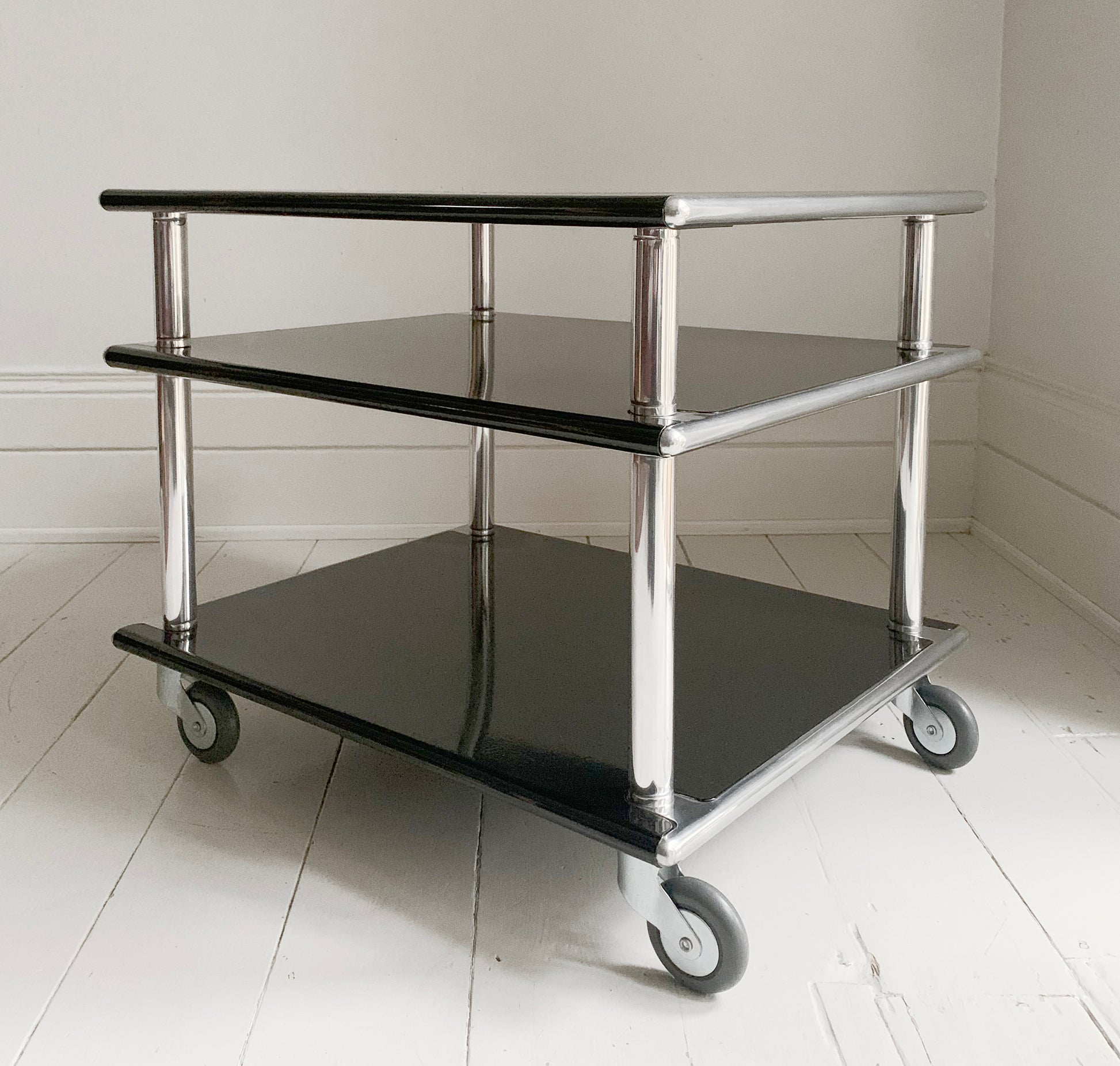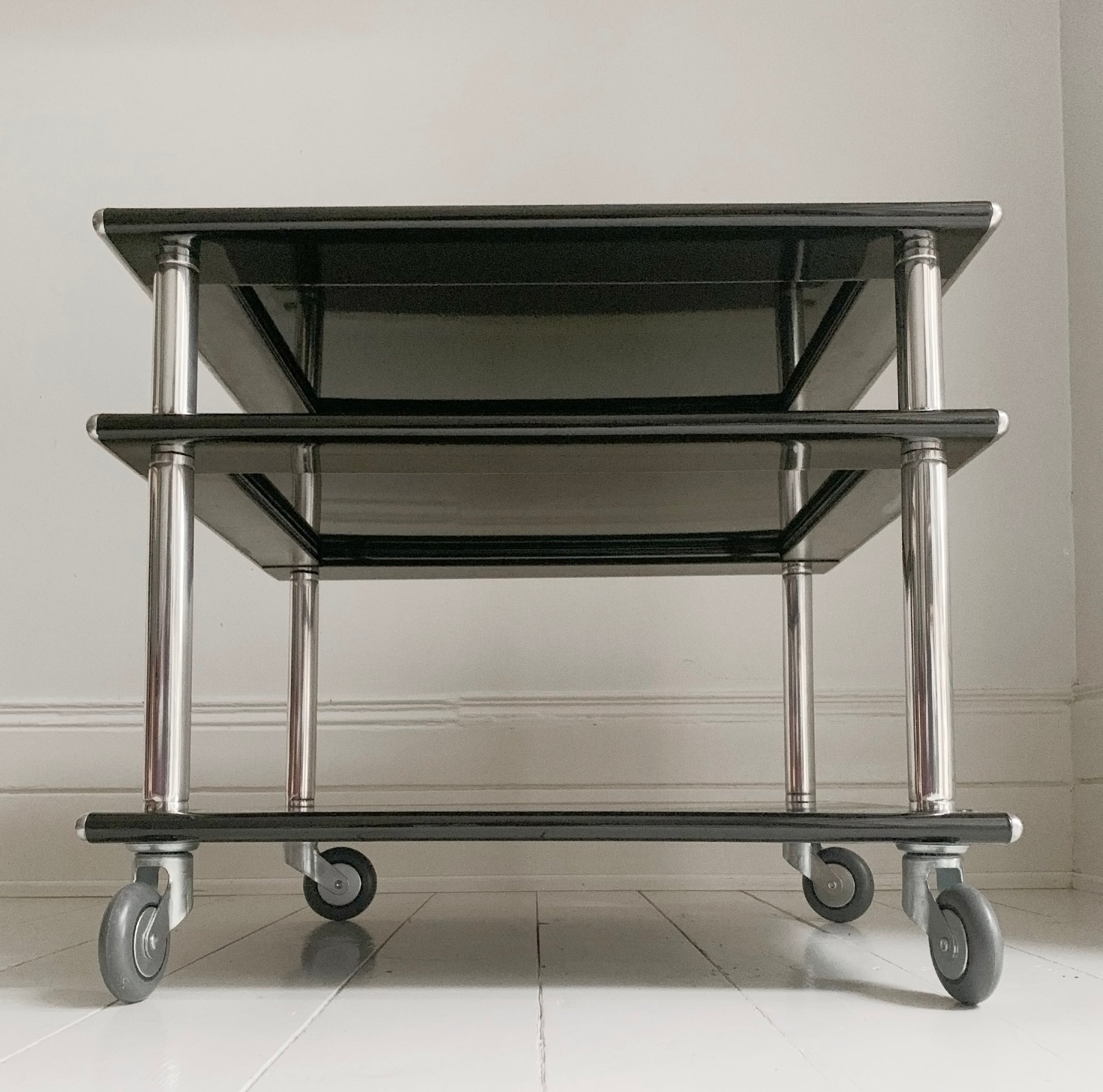 This shelving unit/trolley is in excellent condition and has been gently cleaned and polished giving it a beautiful high shine finish.