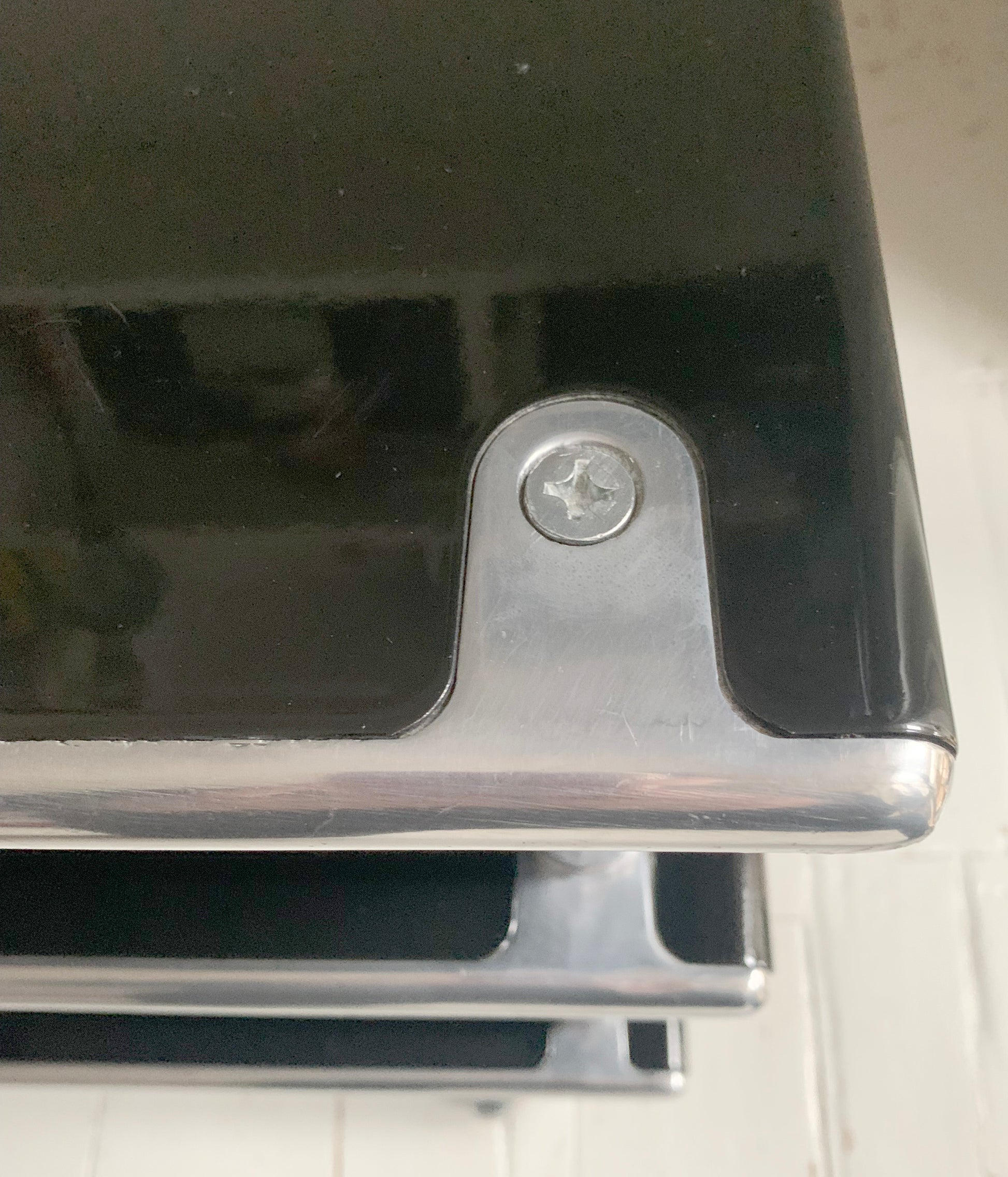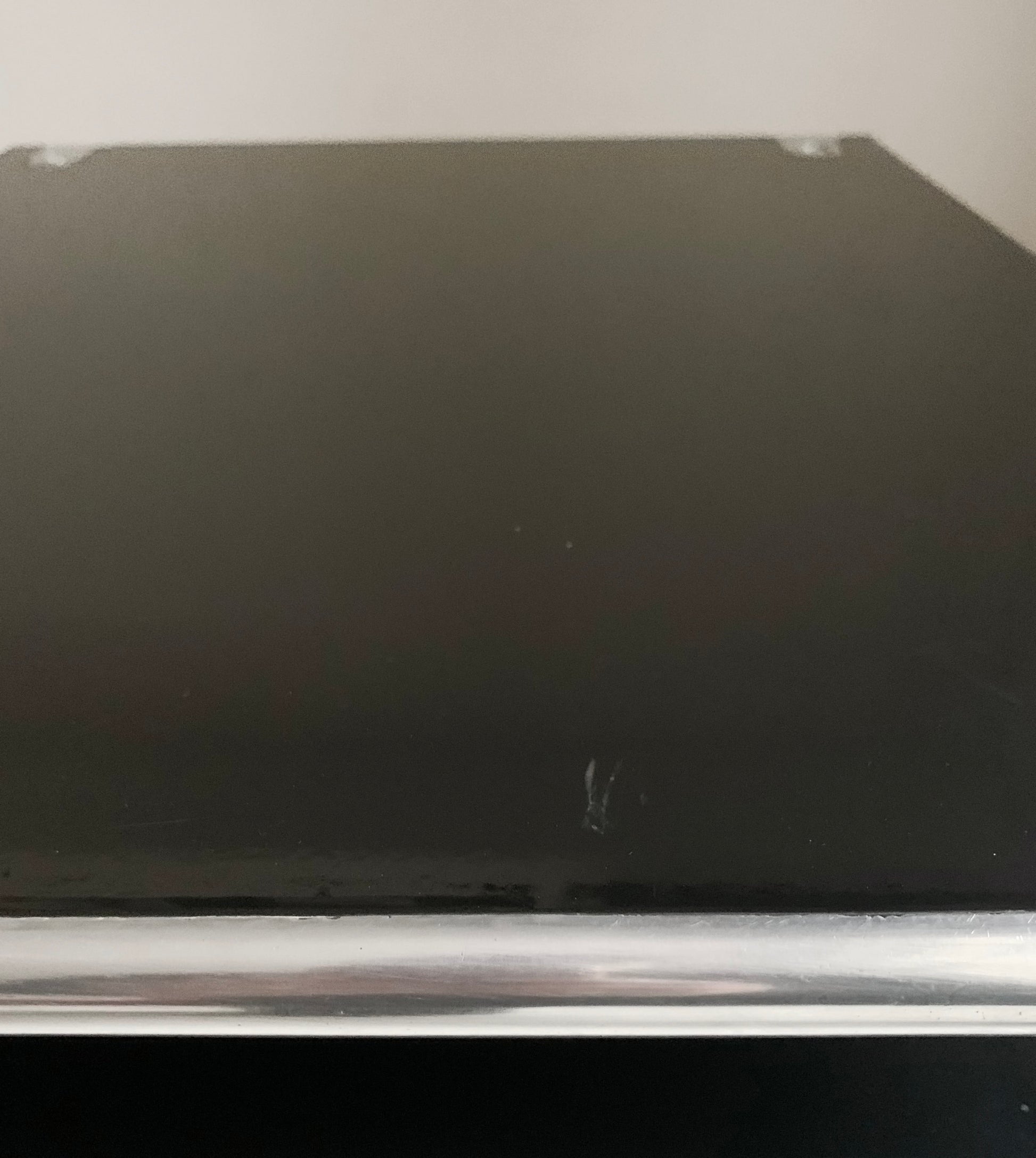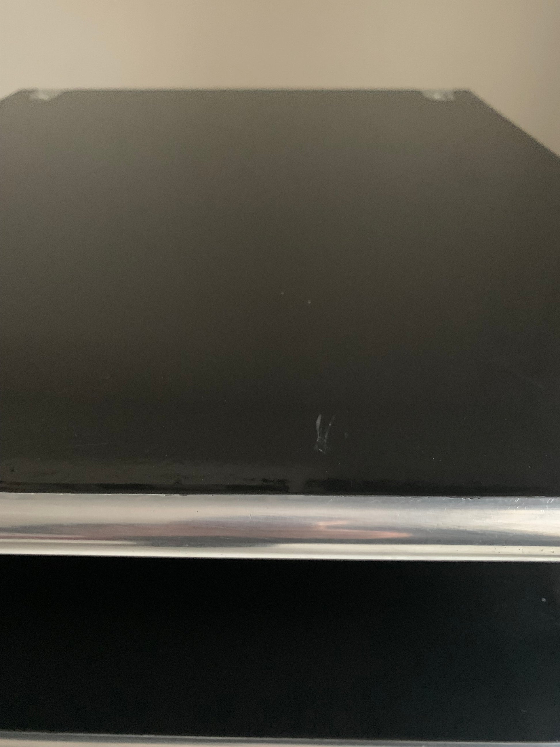 It has some small signs of wear which reflects its age & usage, (small scratches on the surface of the shelves - but the finish is still black) please check out the photos for more details.