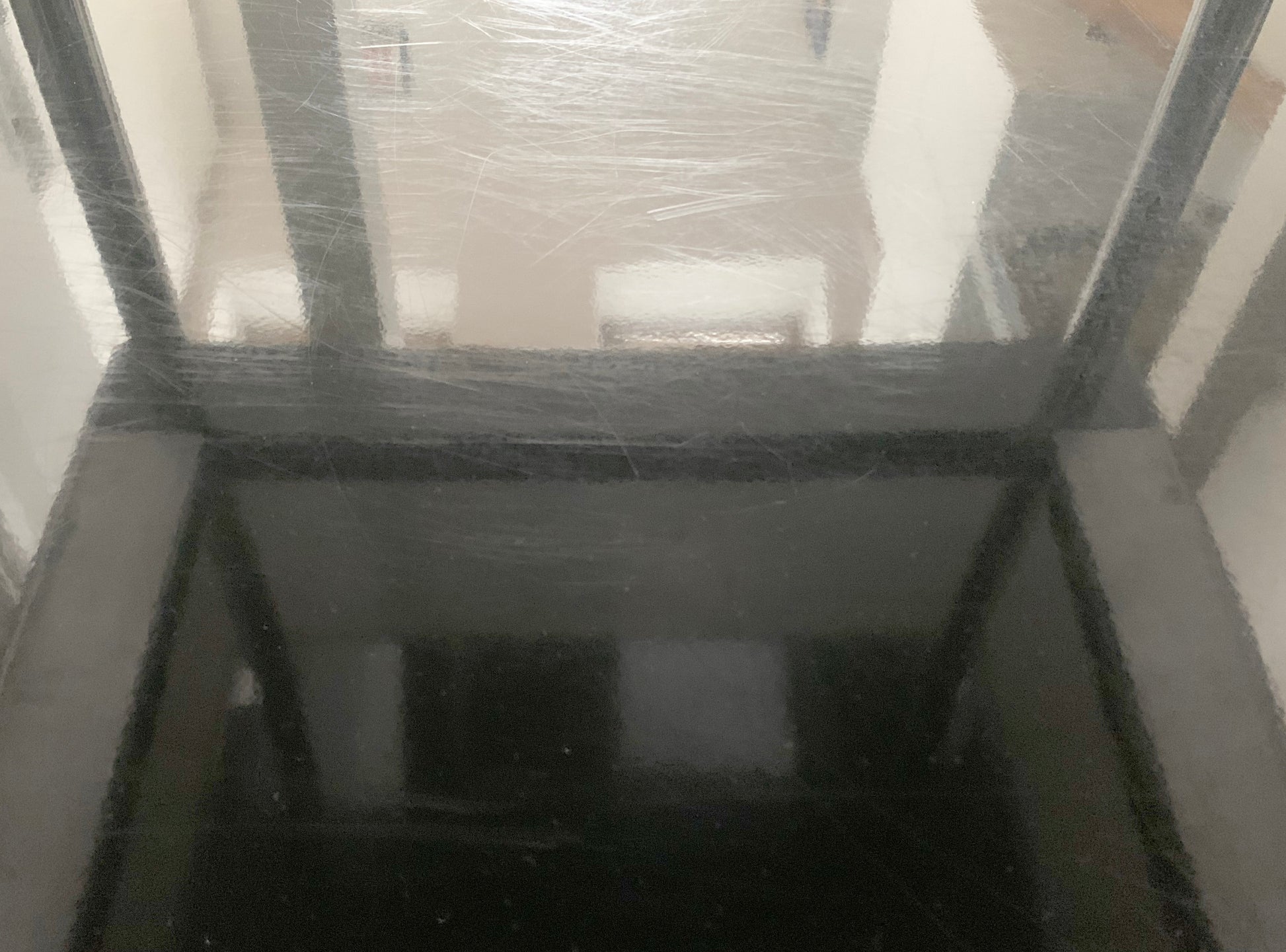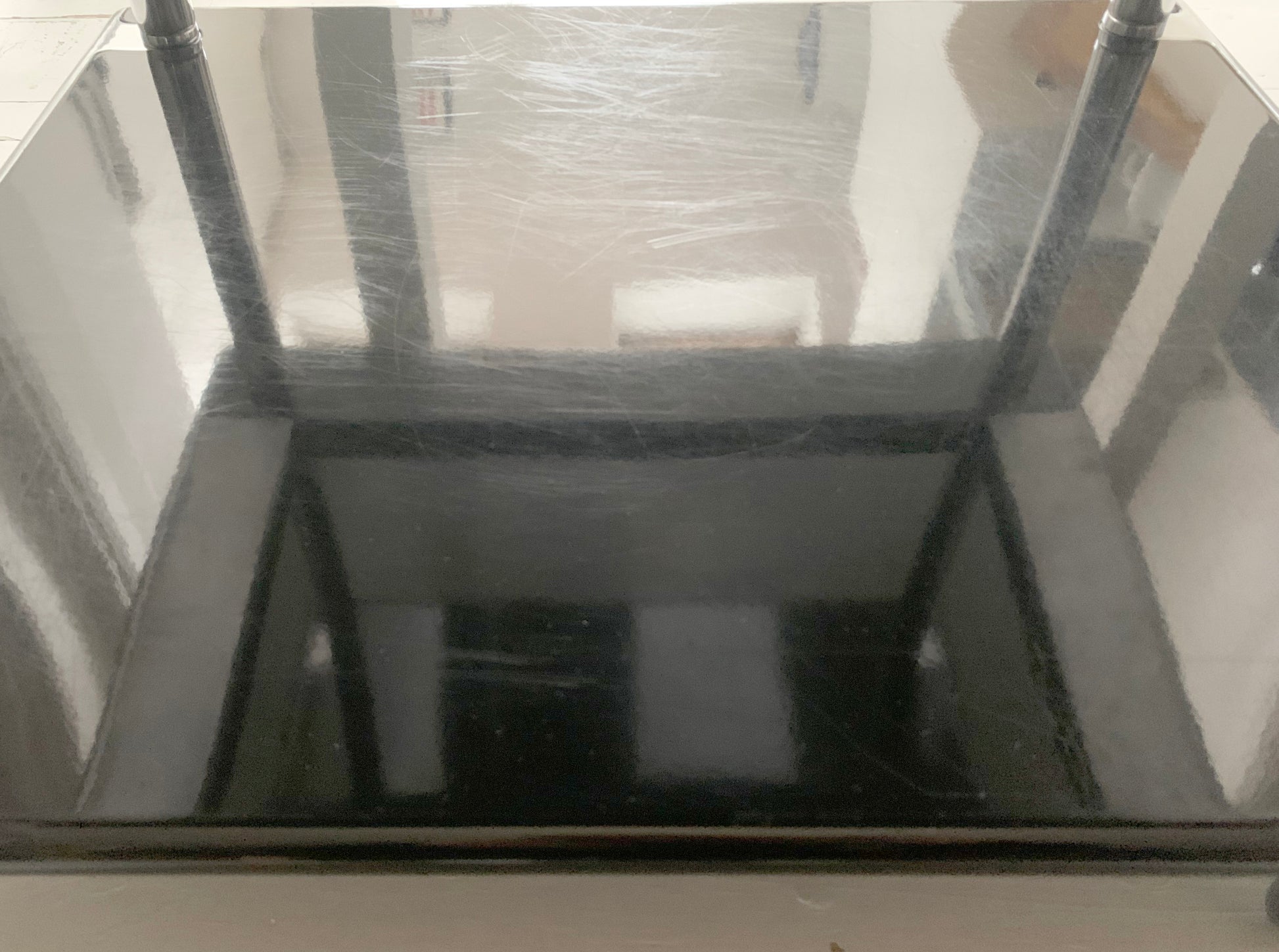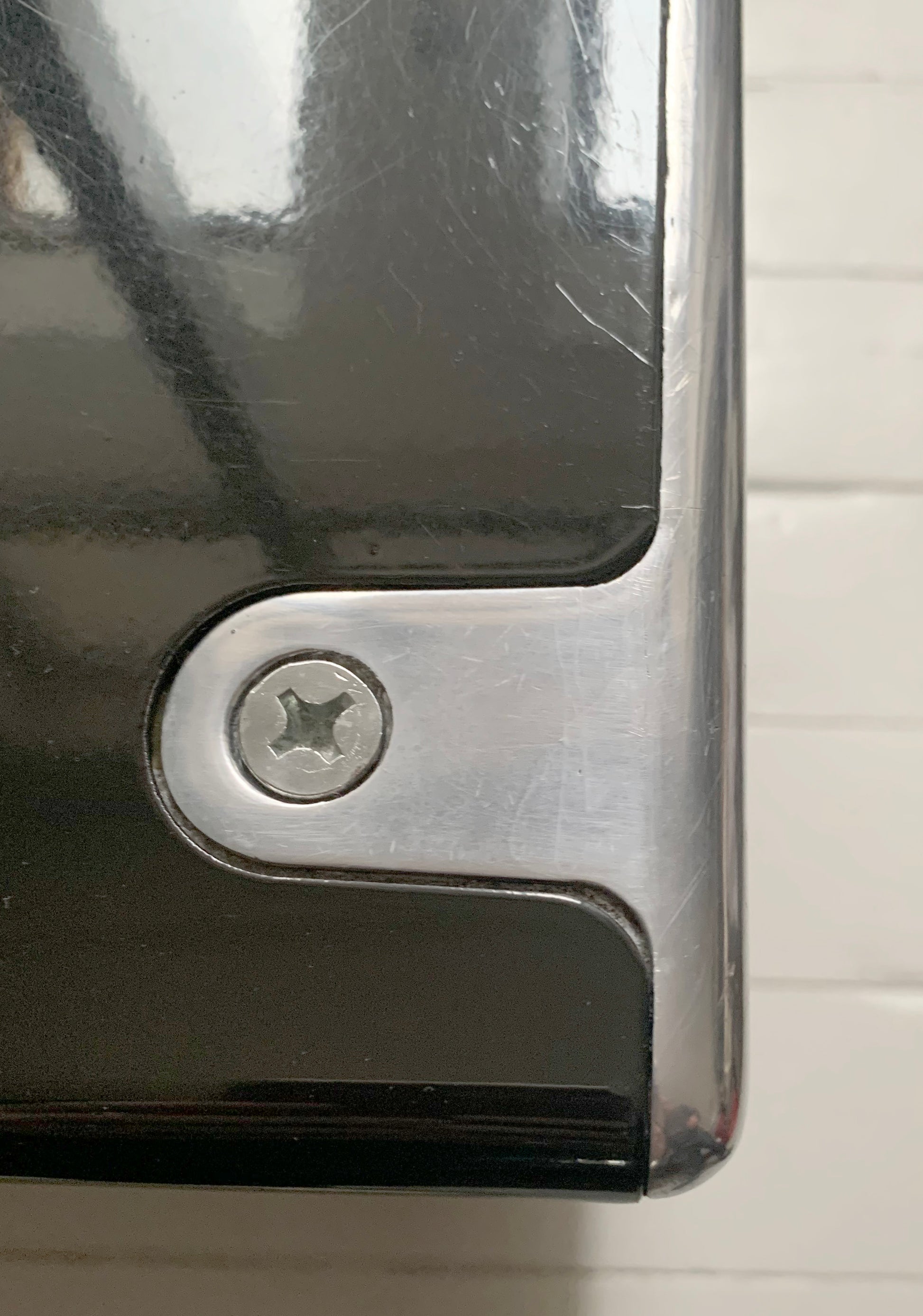 It has some small signs of wear which reflects its age & usage, (small scratches on the surface of the shelves - but the finish is still black) please check out the photos for more details.