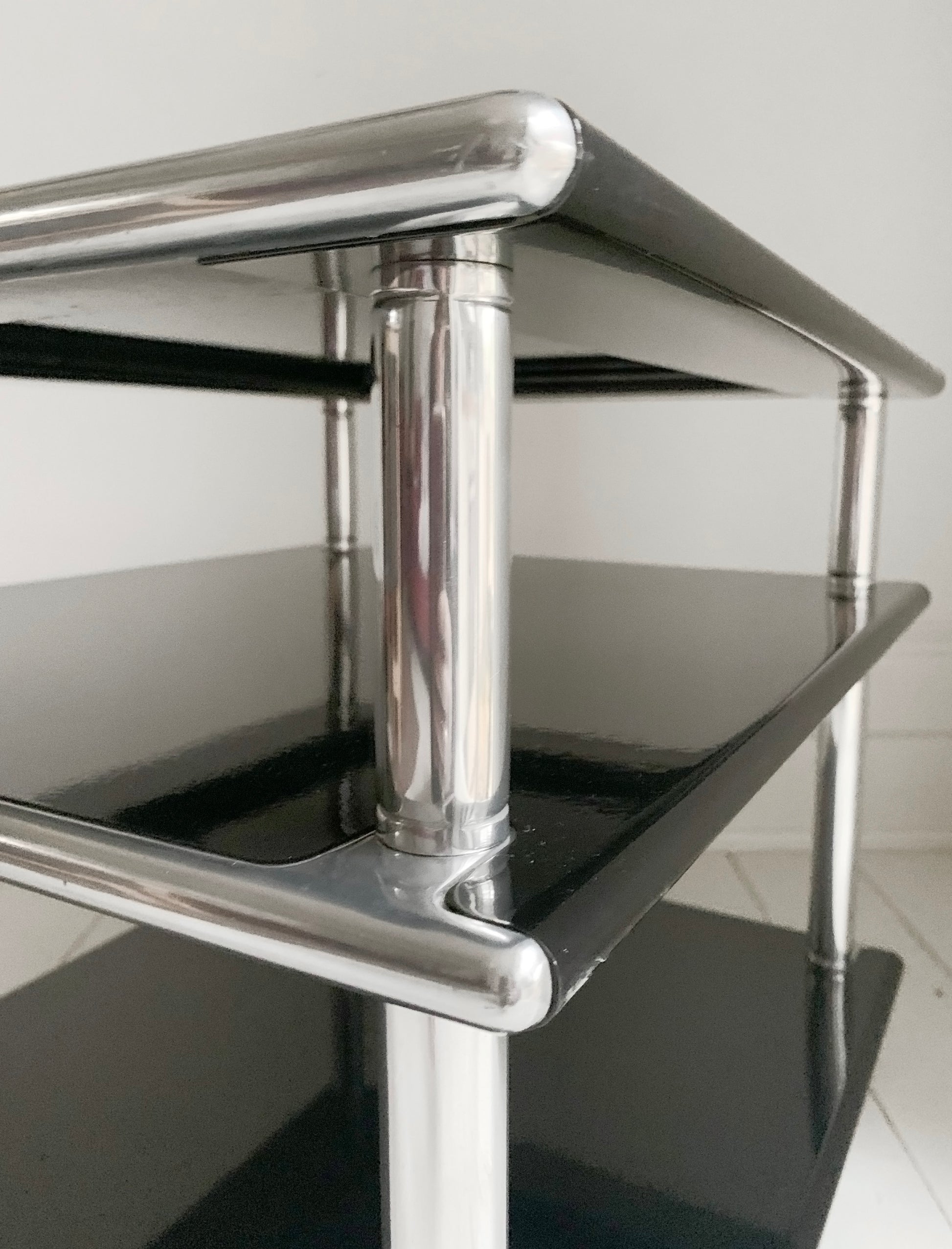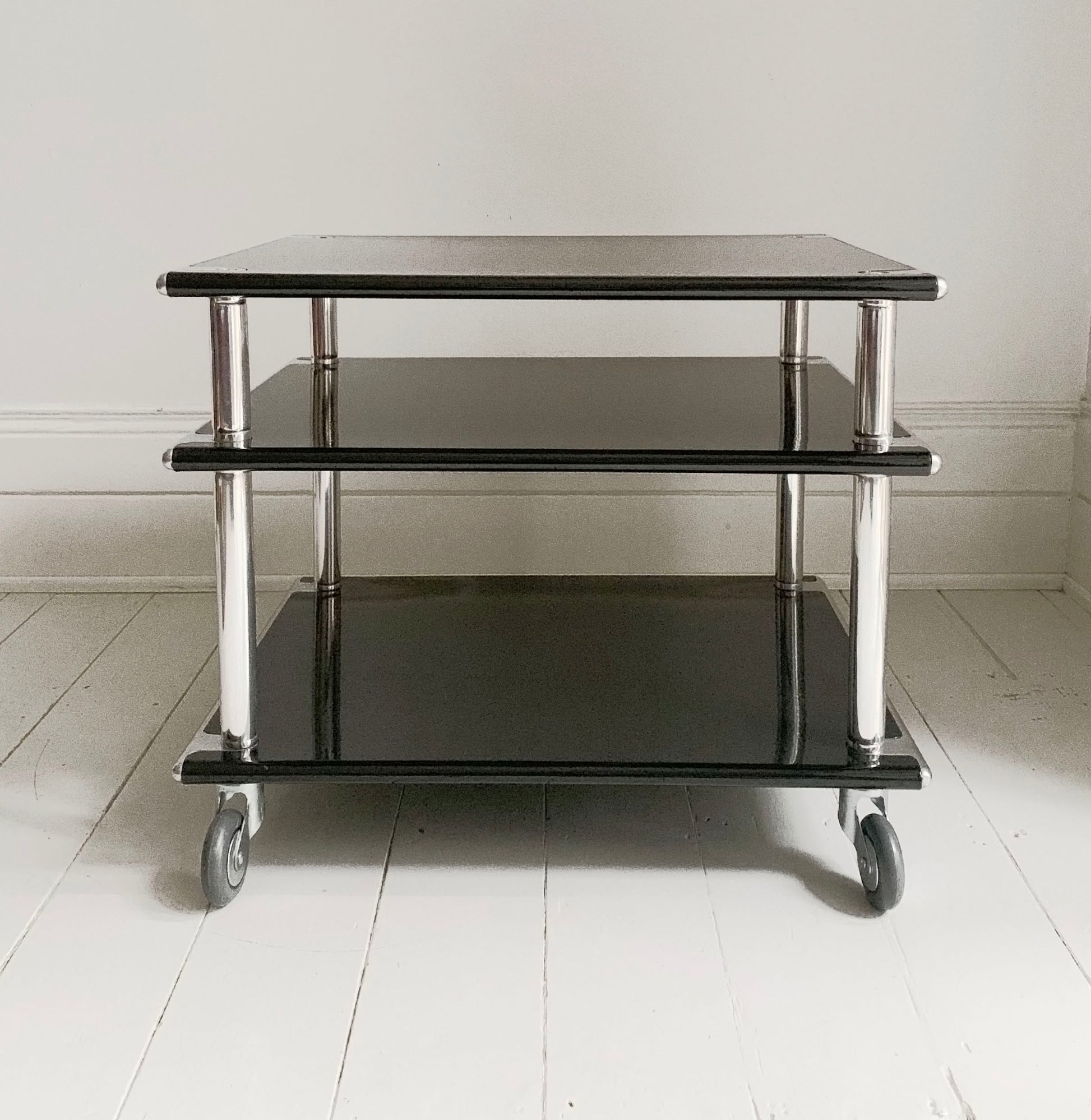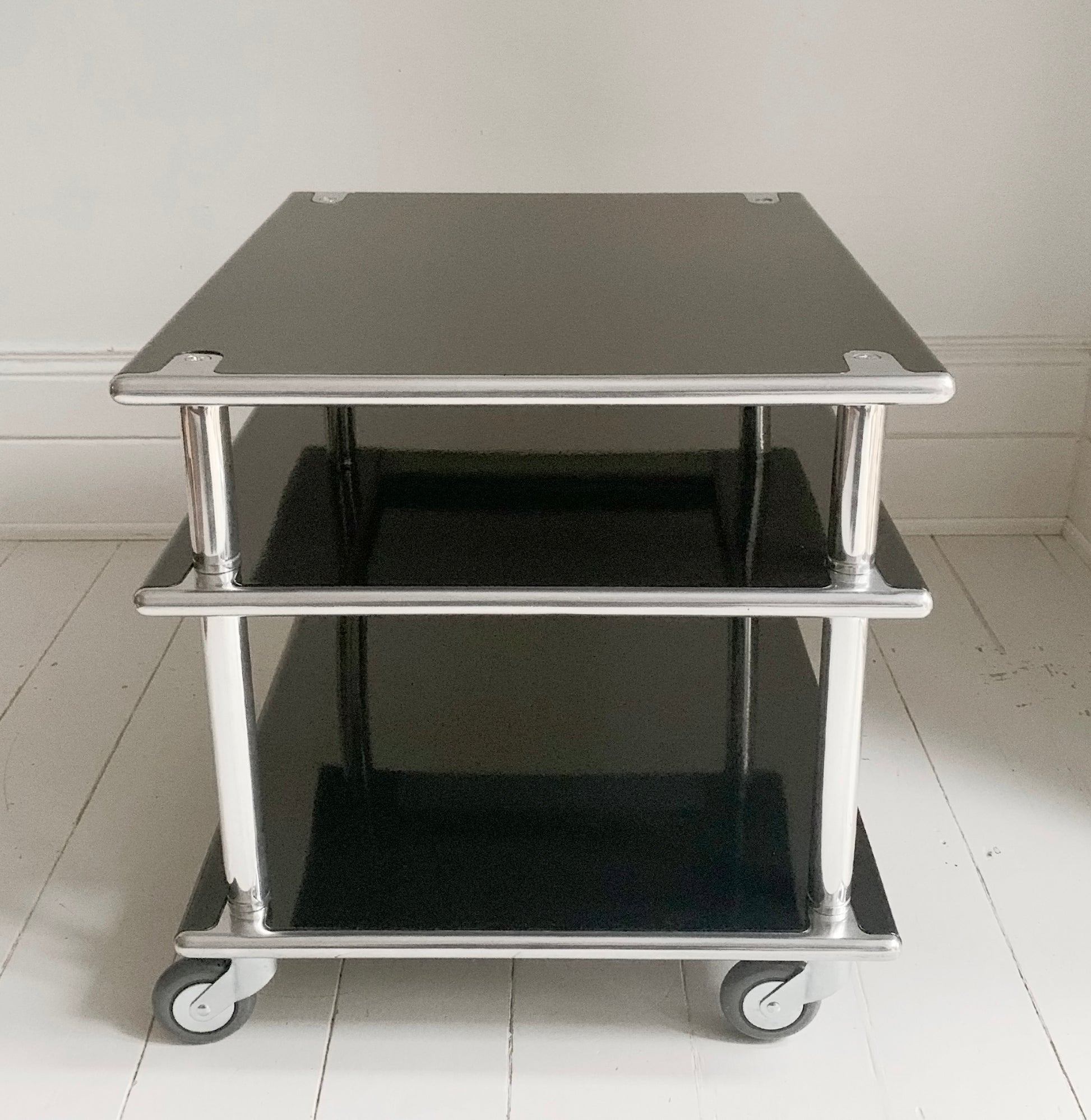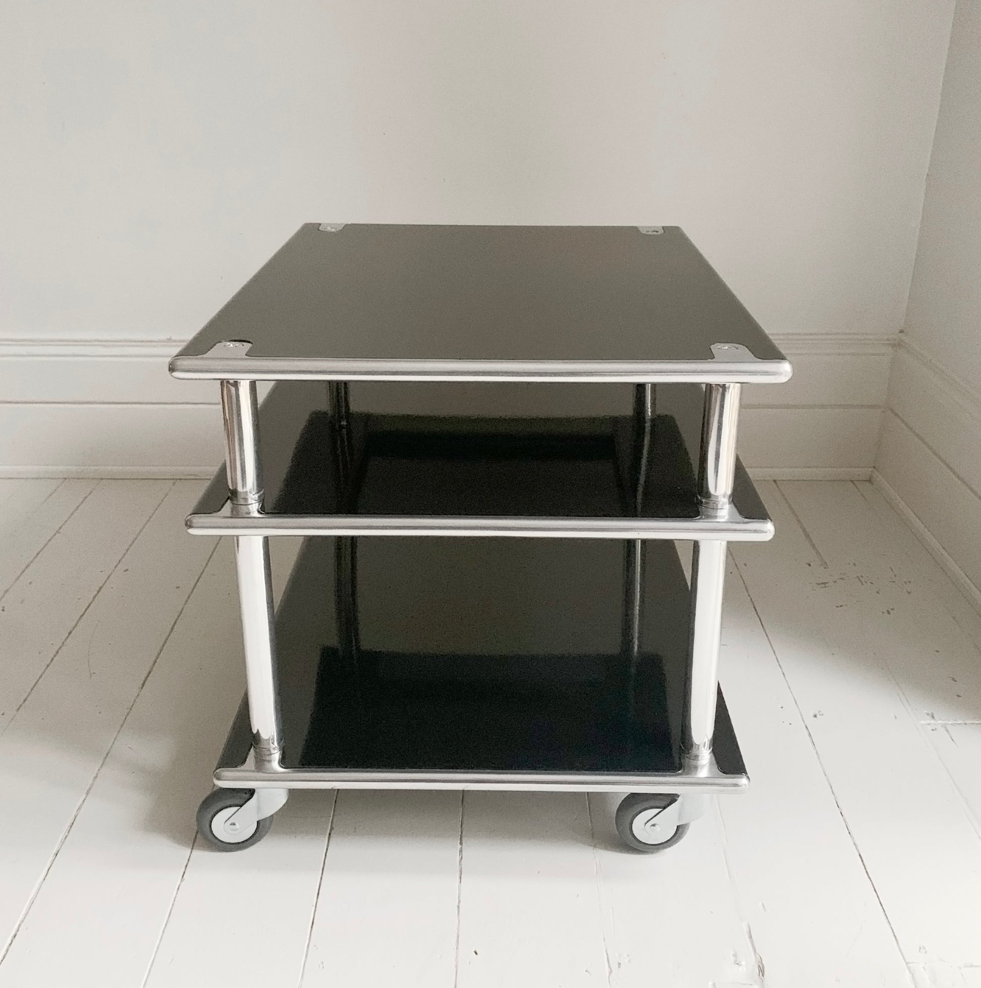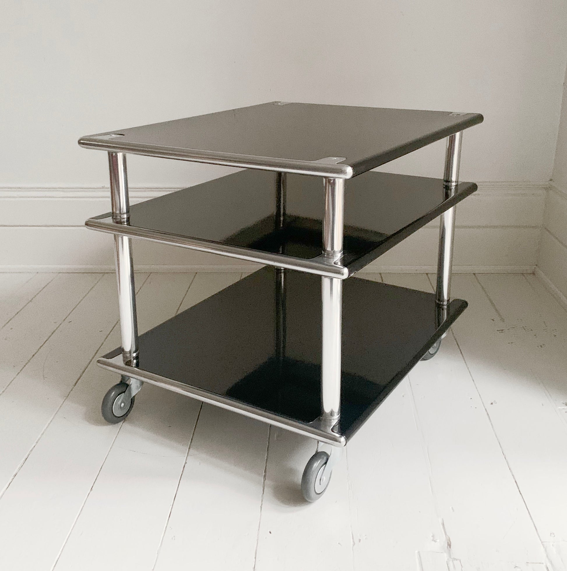 1980's Habitat 3 Tier Black Steel & Aluminium Table / Media - Coffee Table / Turntable Stand
