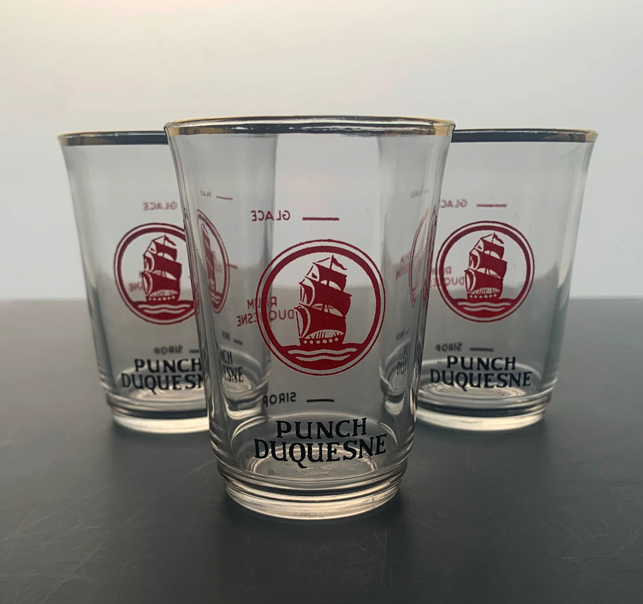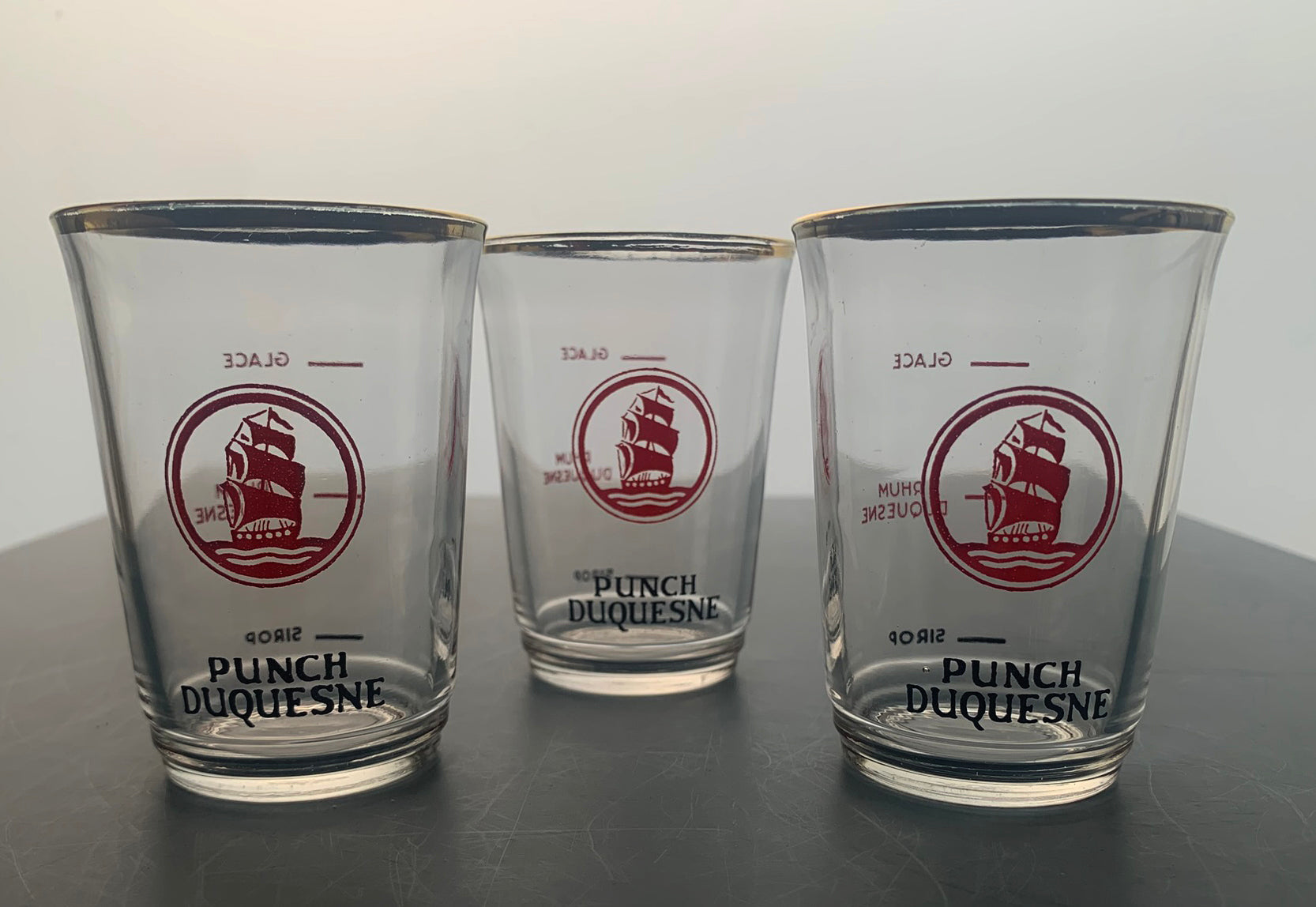 3 x Vintage French Punch Duquesne - Small Gold Rimmed Glasses for Rum Punch