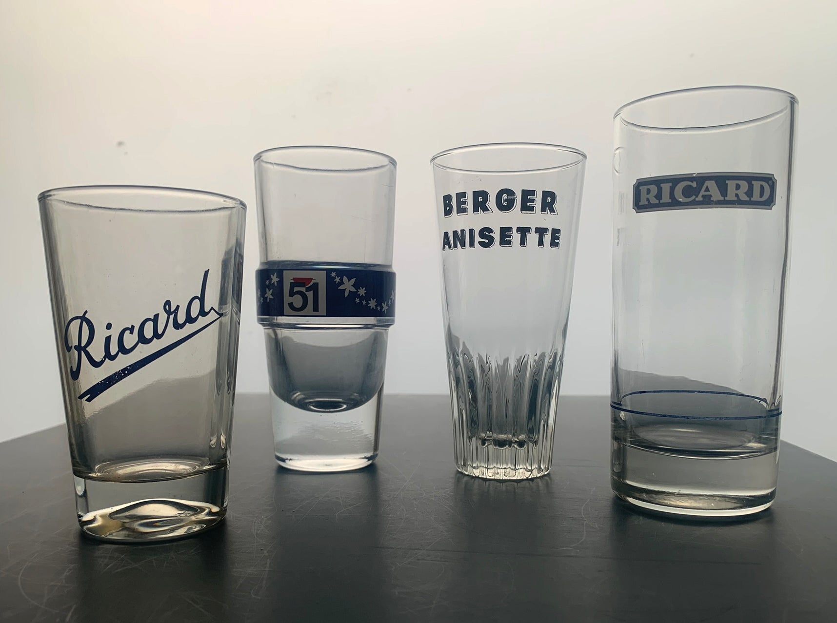 4 x Vintage French Mixed Set of Pastis Glasses - Ricard/Pastis 51 & Berger Anisette