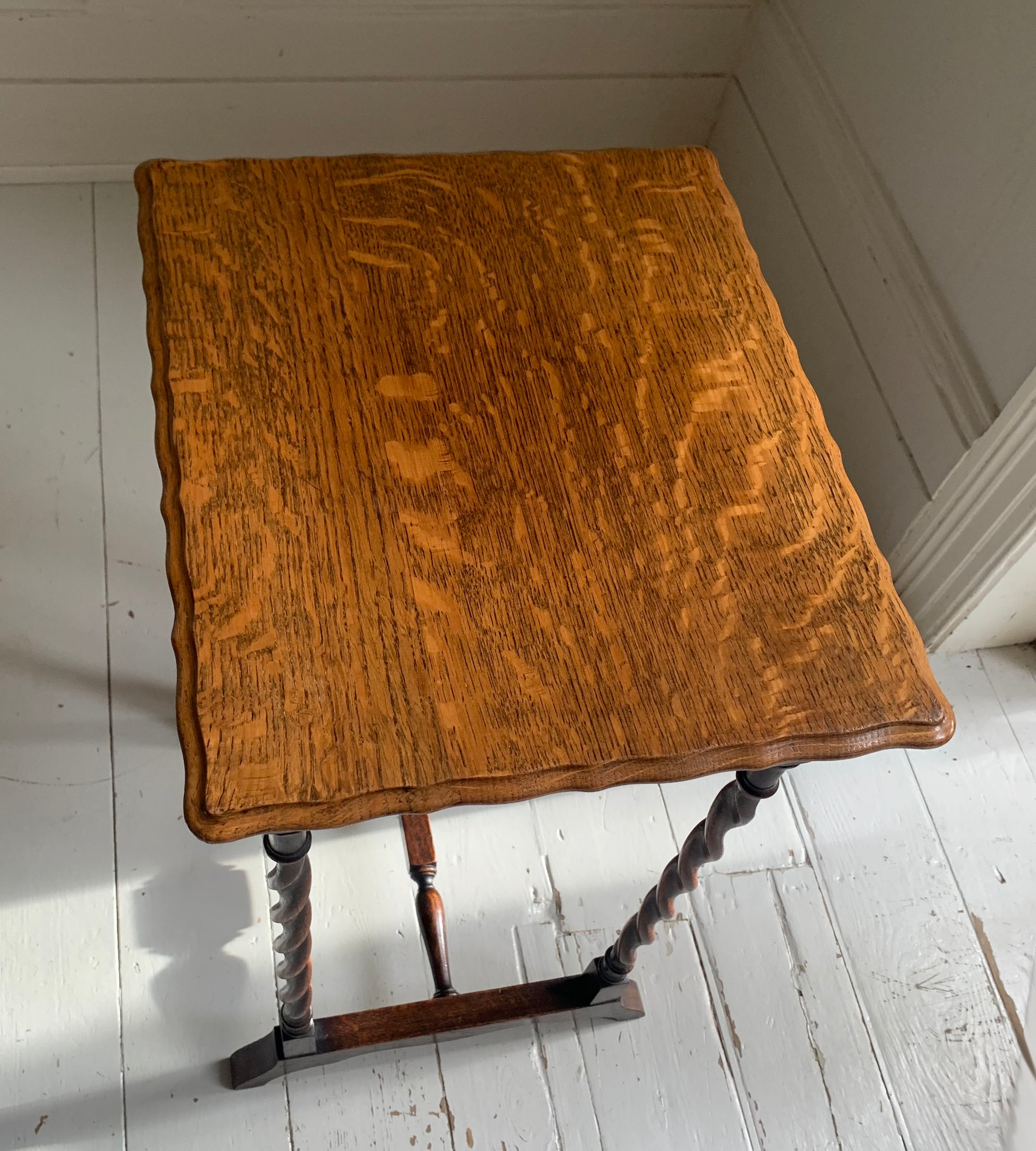 Antique Edwardian Oak Side Table w/ Barley Twist Legs, Pie Crust Edging Top