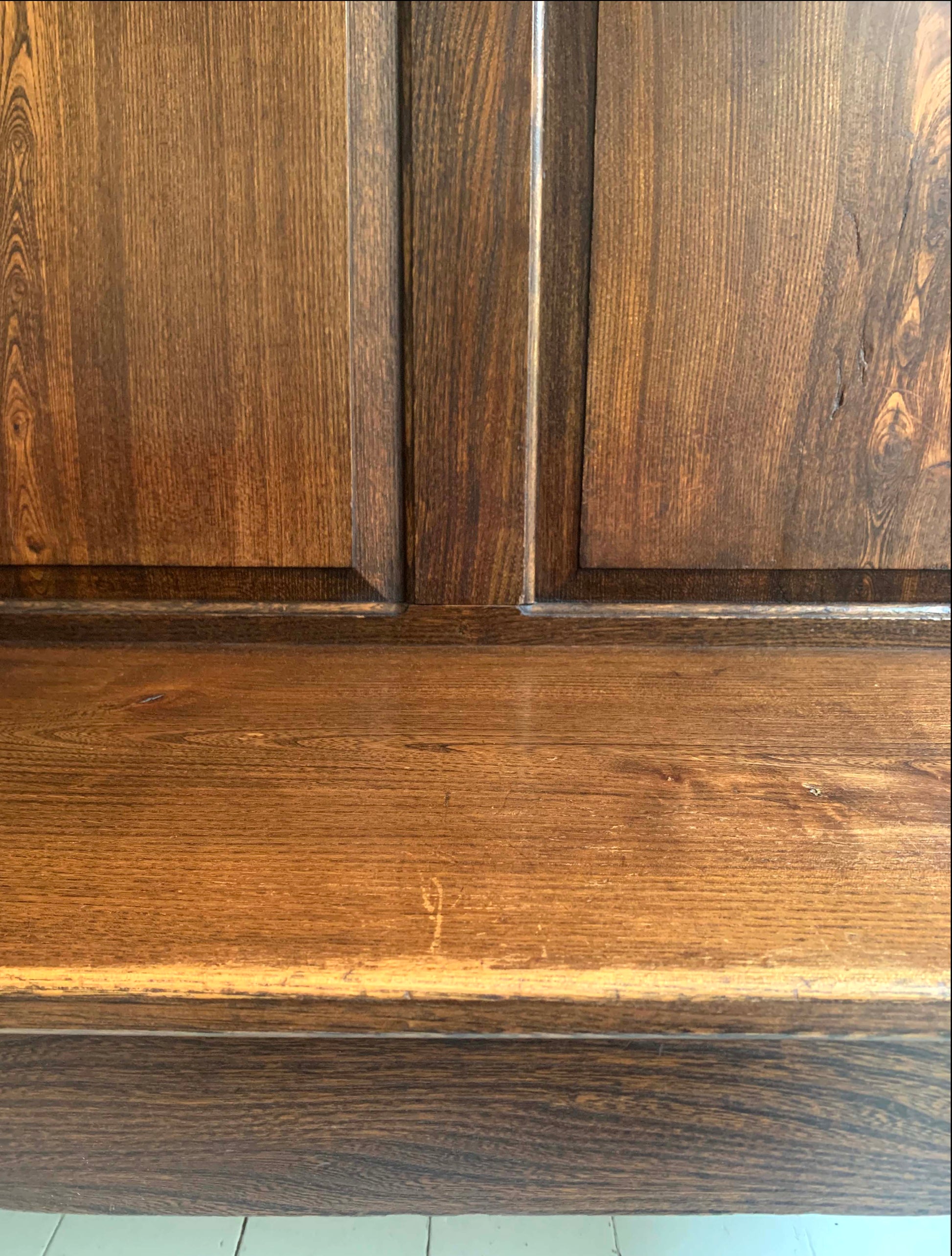 The settle has been deep cleaned, oiled and waxed to bring back the richness of the wood and the grain, whilst still leaving the marks, knocks & scratches evident from its previous life - please see the photos for more details.
