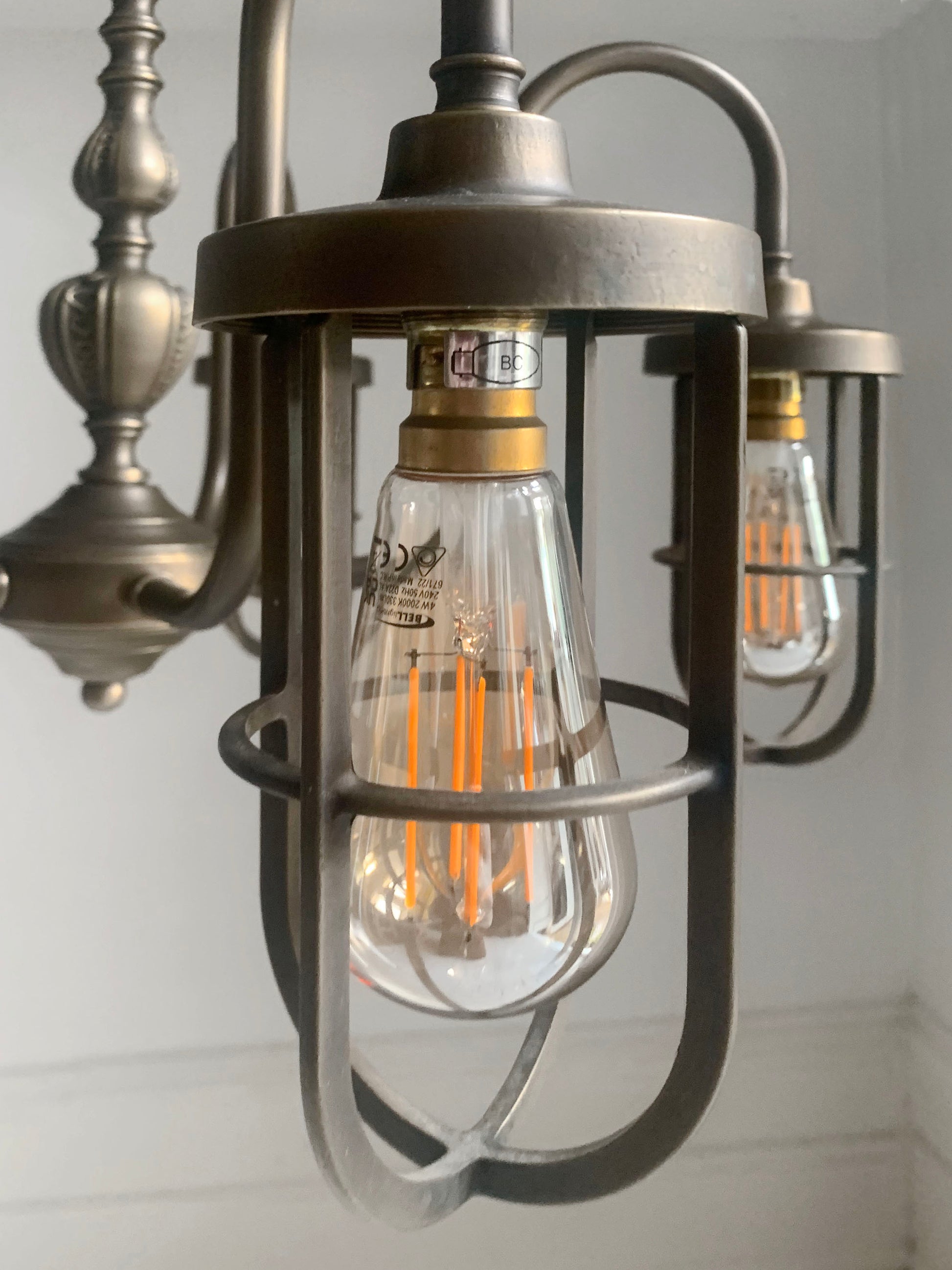 (We do have two of these chandeliers... the other one isn't listed yet & comes with different style filament bulbs... do message if you are interested in buying both!)
