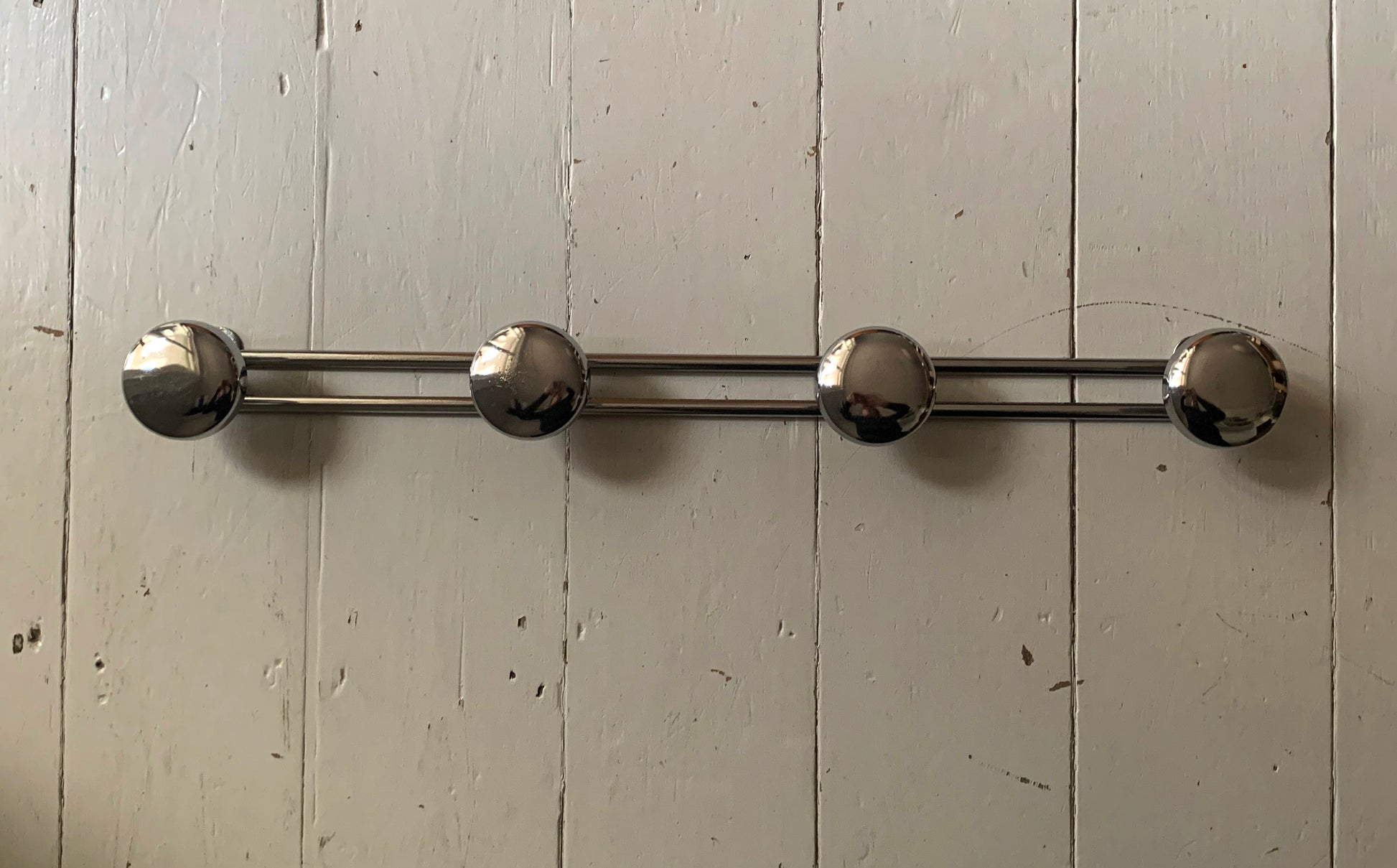 French Wall Mounted Mid Century Modern Aluminium Coat Rack with Four Hooks