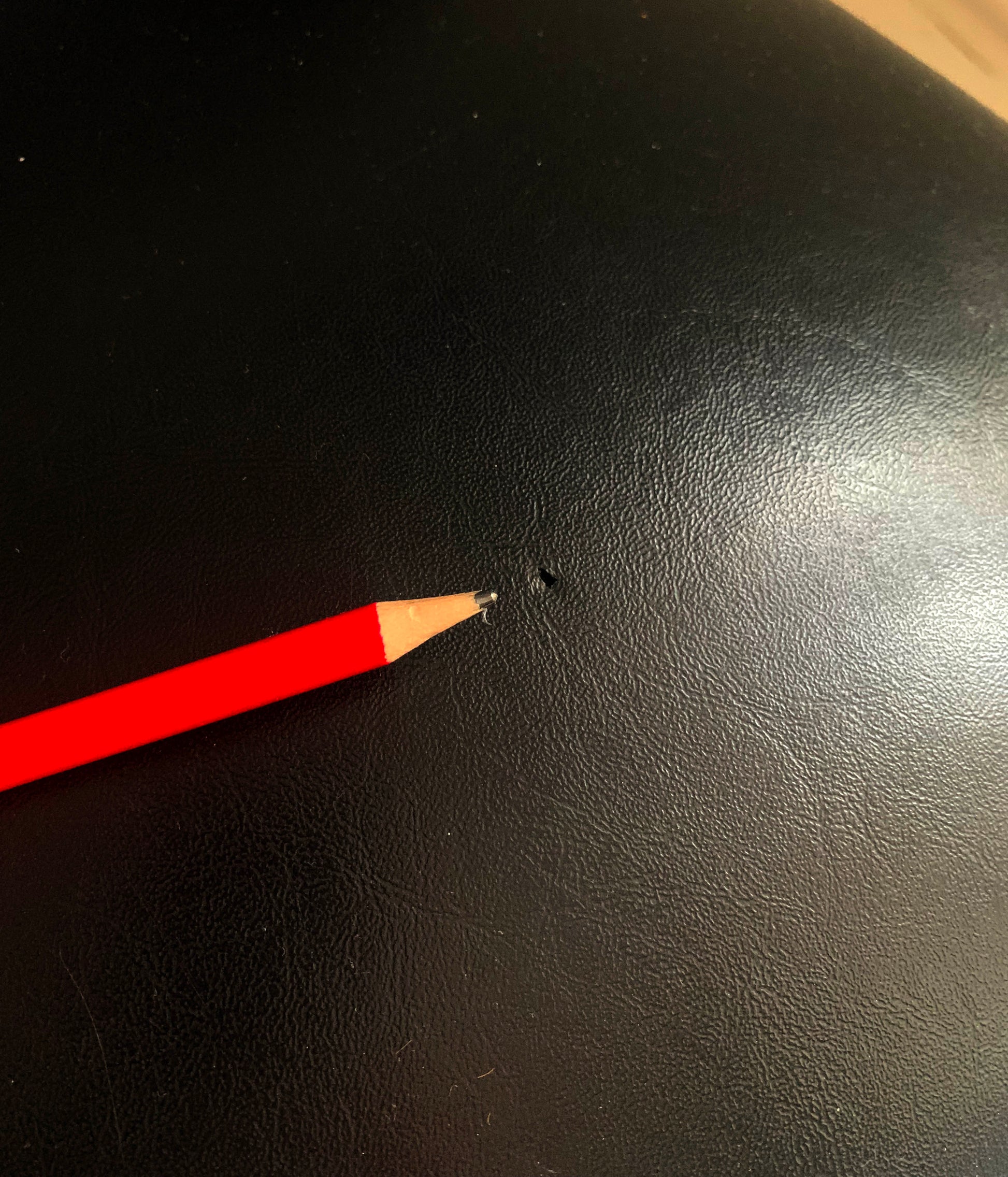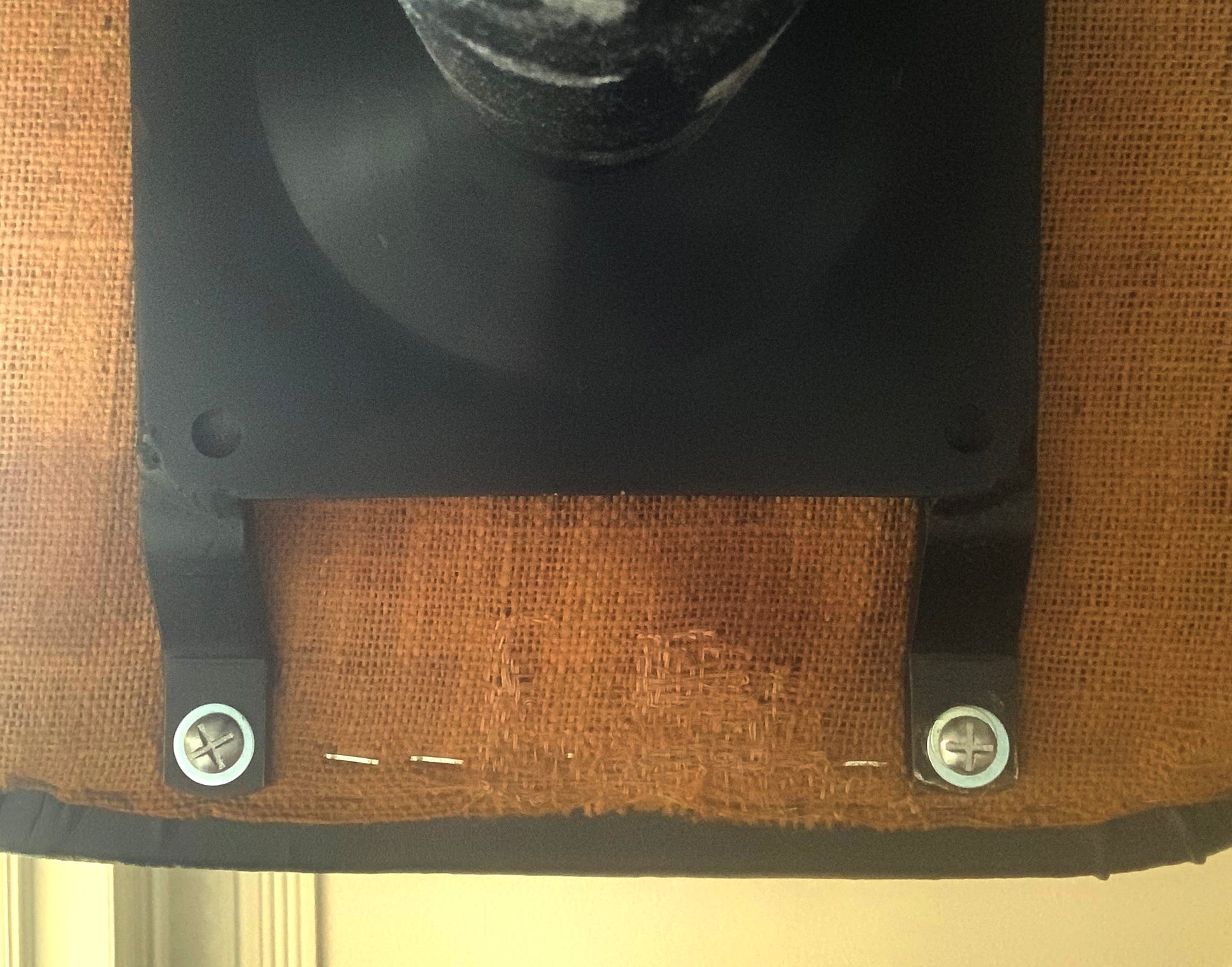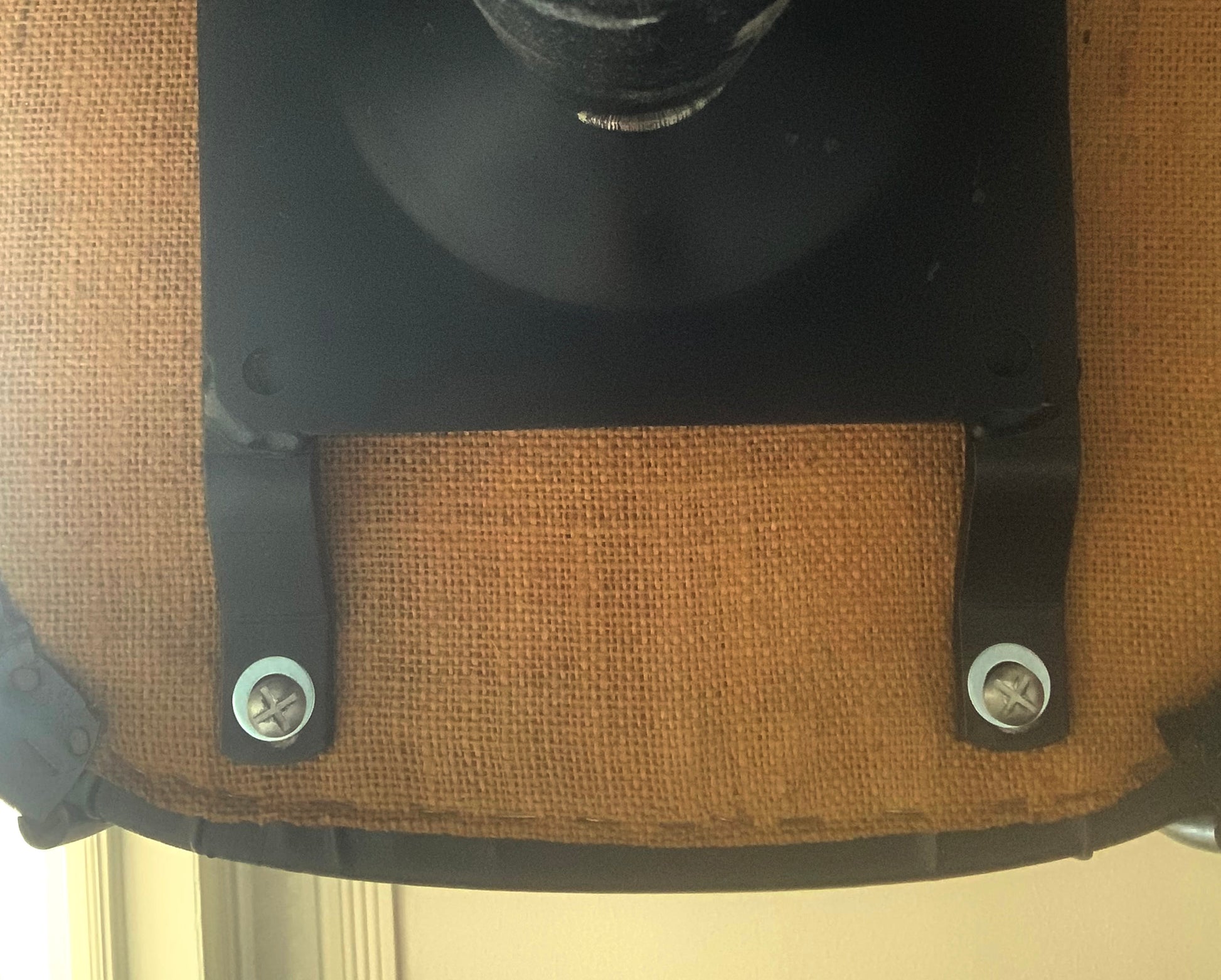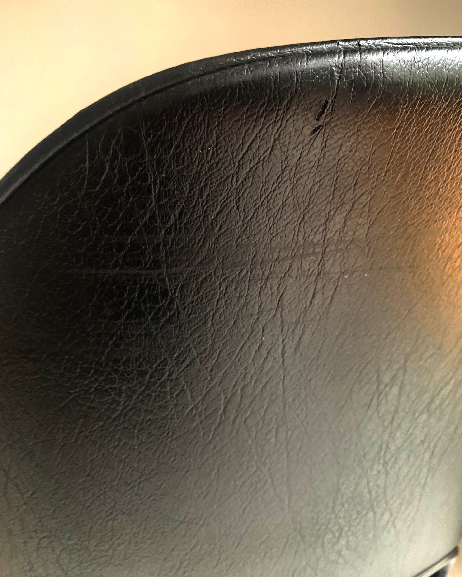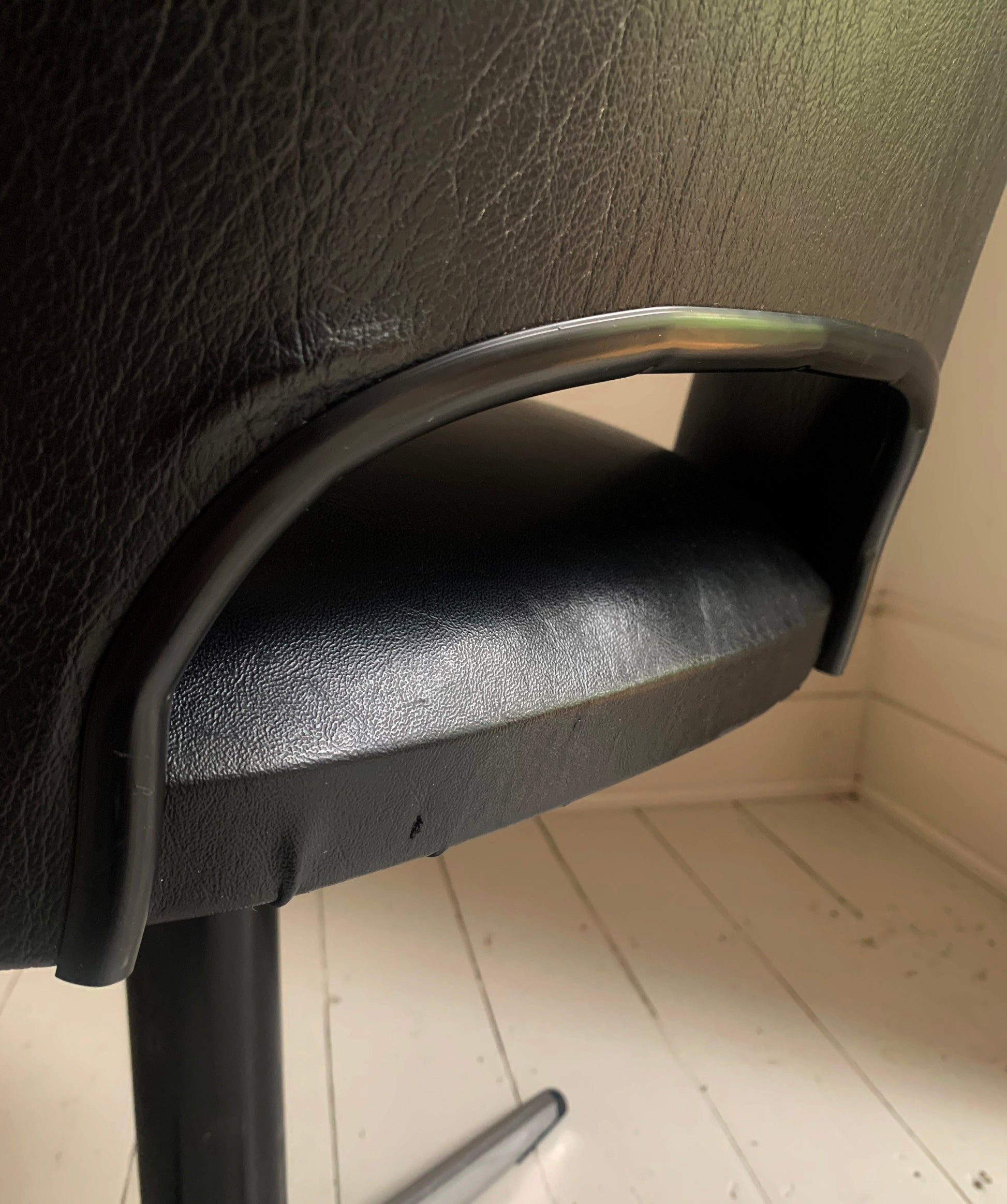 Please note; - there are a few minor scuff marks within the vinyl around the back rest, and one small gouge area on the seat, highlighted in the photo with a pencil. The hessian fabric used underneath the seat has started to wear slightly at the front, this has been gently repaired to prevent further fraying.