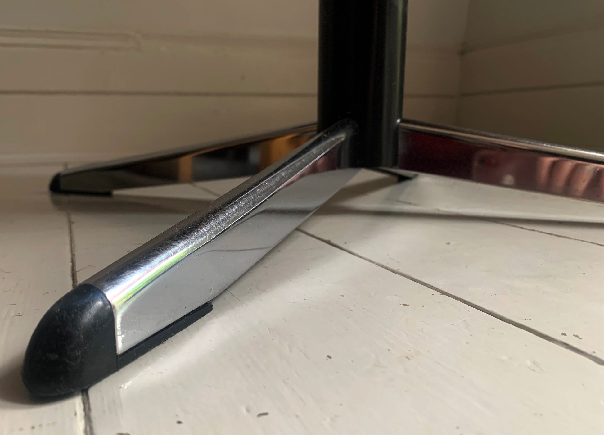 The chair has been deep cleaned, waxed and polished and is in great condition for its age, with a smooth swivel action.