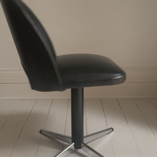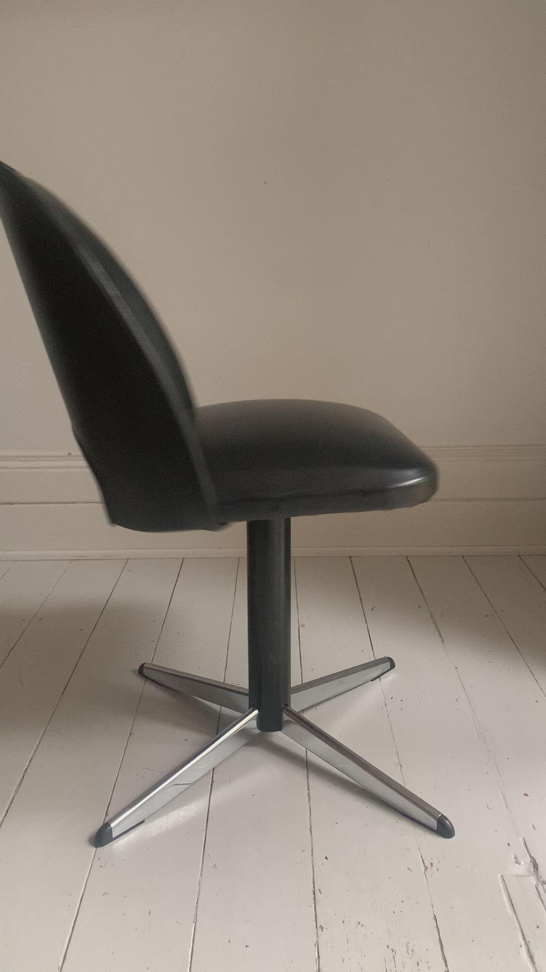 Mid Century Modern Black Vinyl Swivel Office / Dining Chair on Steel Legs