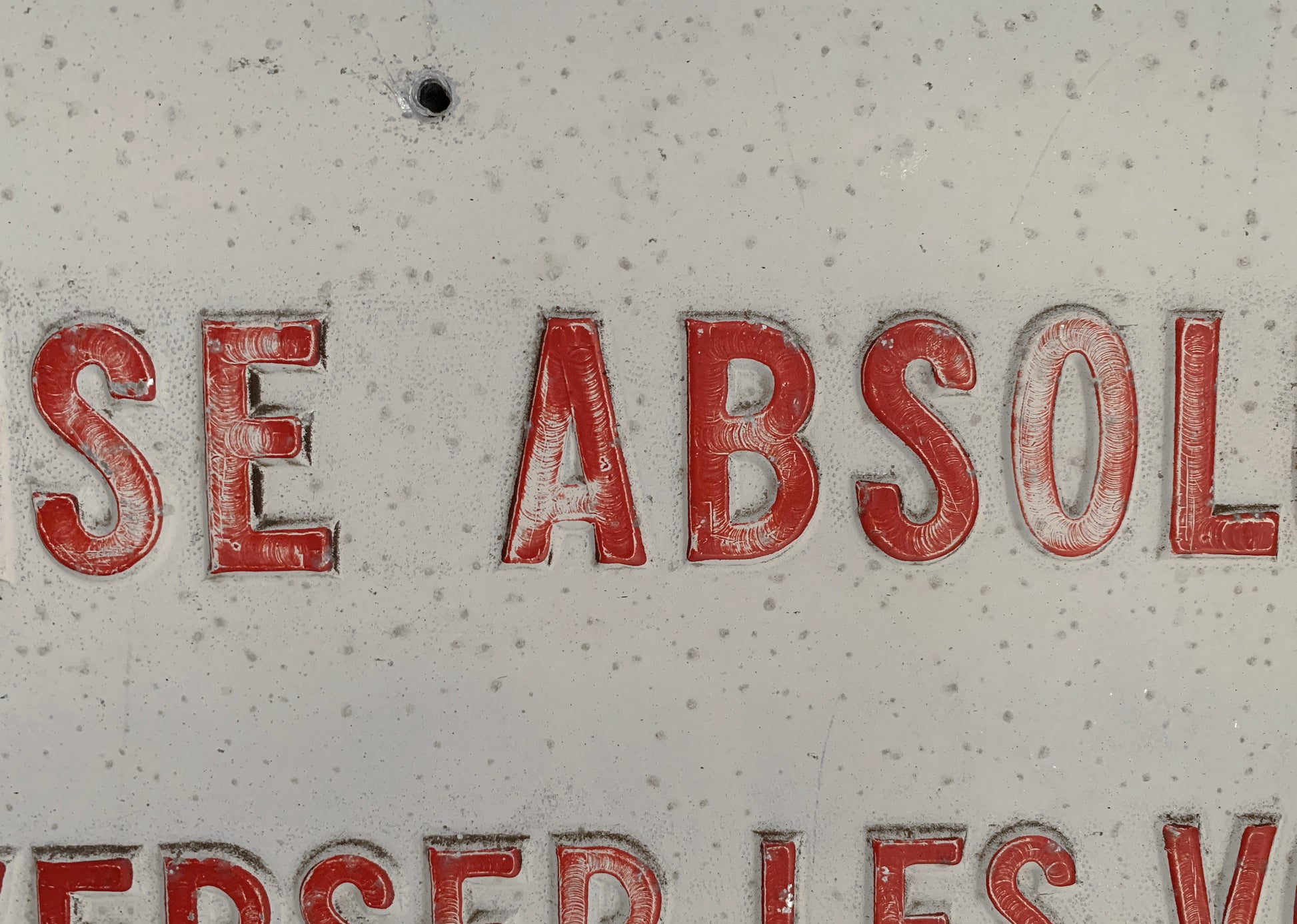 The sign is in good condition for it's age, there are sign of patina of the surface, a slight bend to the piece and wear at the corners. Do check out the photos for more details.