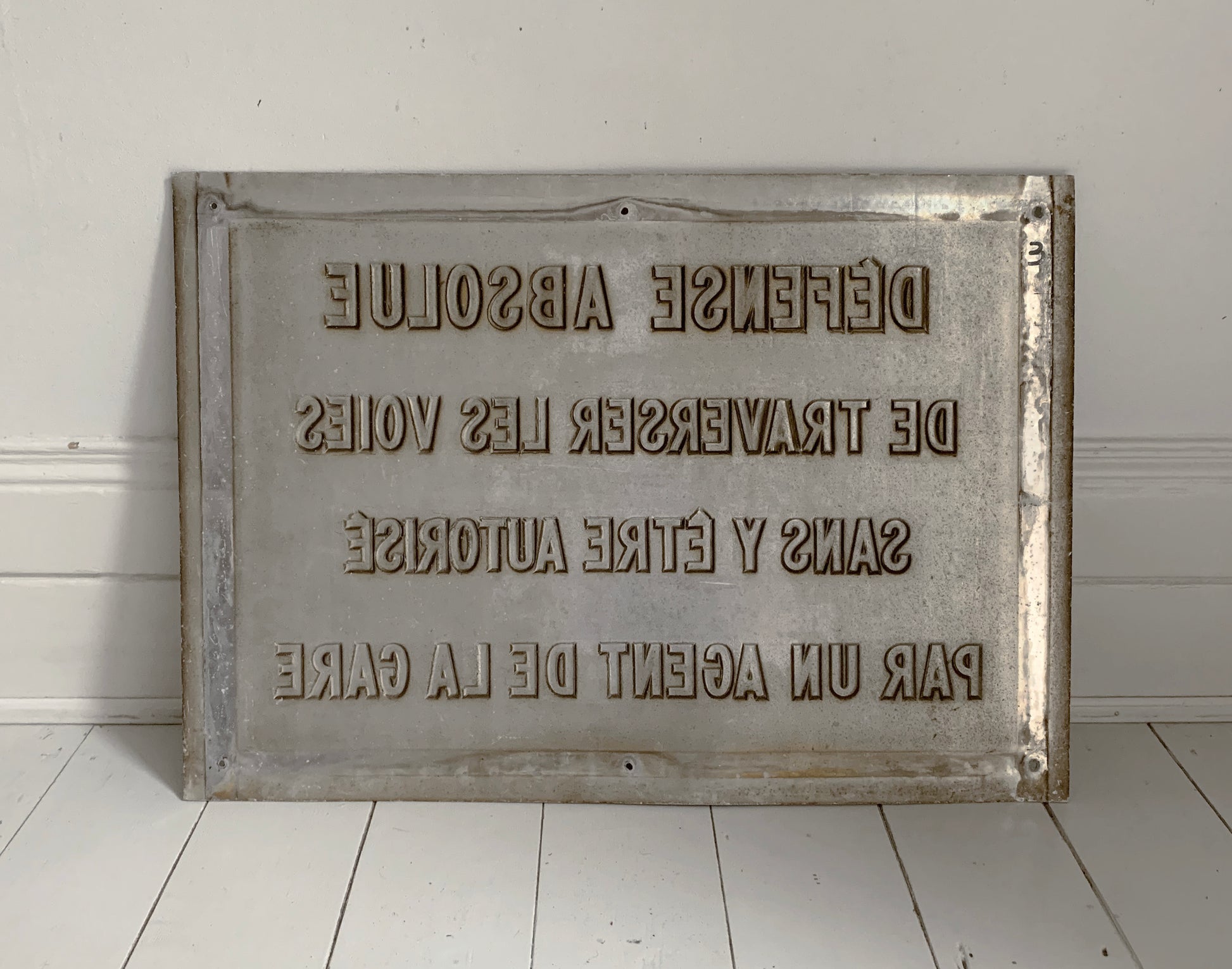 This splendid rare SNCF rail sign is unusual as it's embossed.