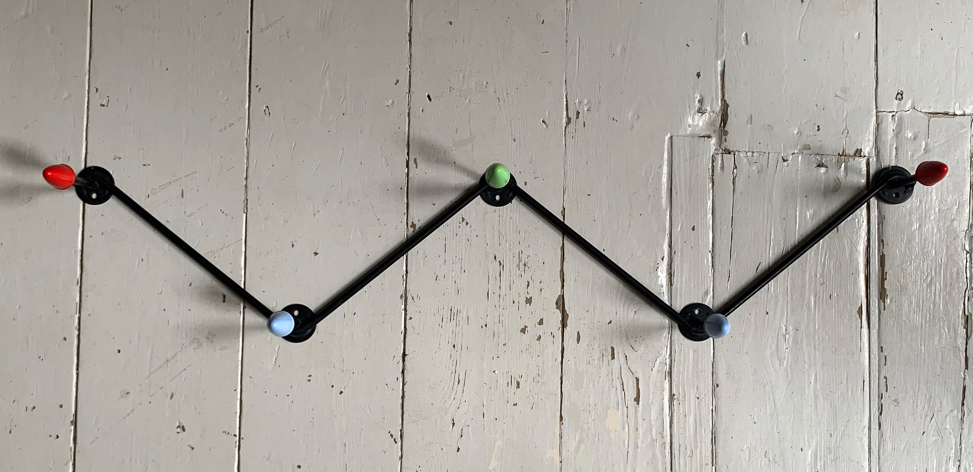 A timeless set of five Sputnik/Atomic, wall mounted coat hooks - perfect for hallways, bedrooms or bathrooms.