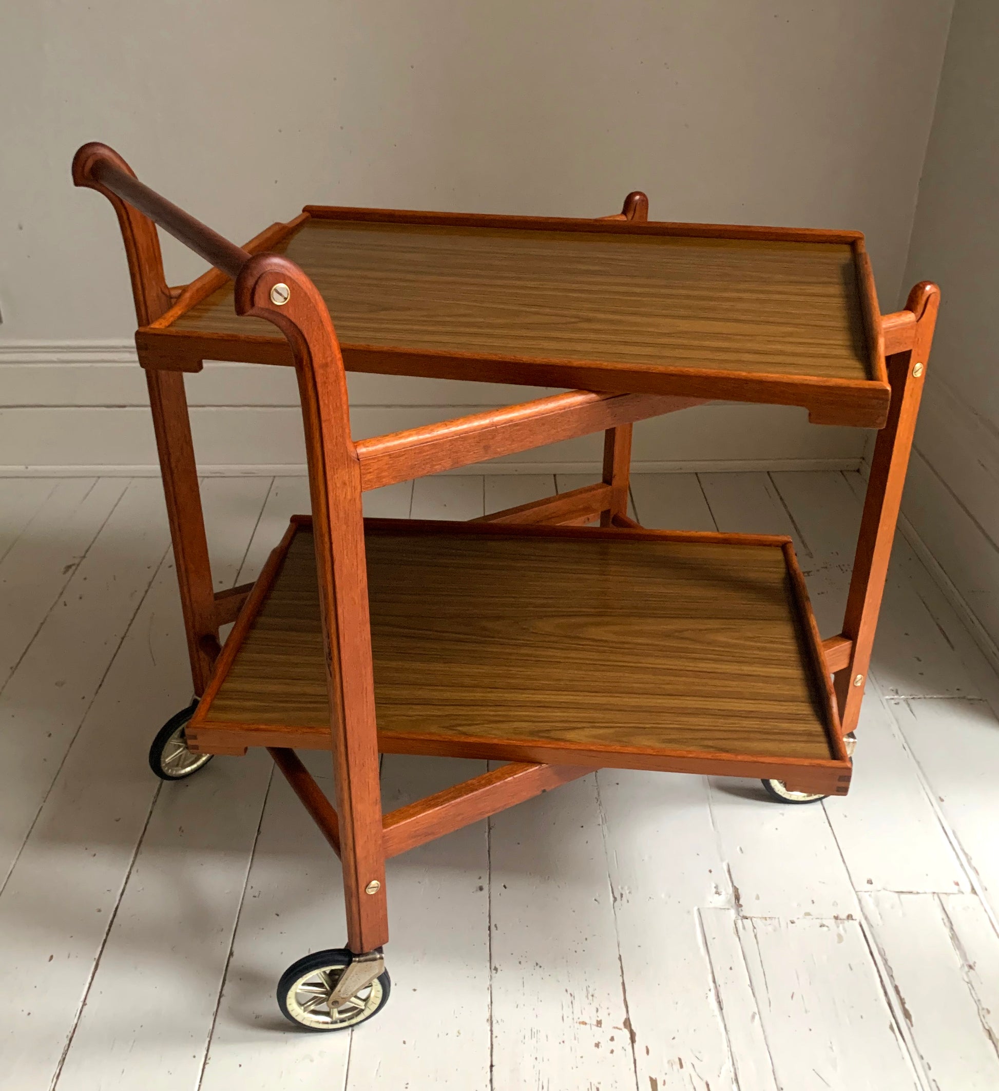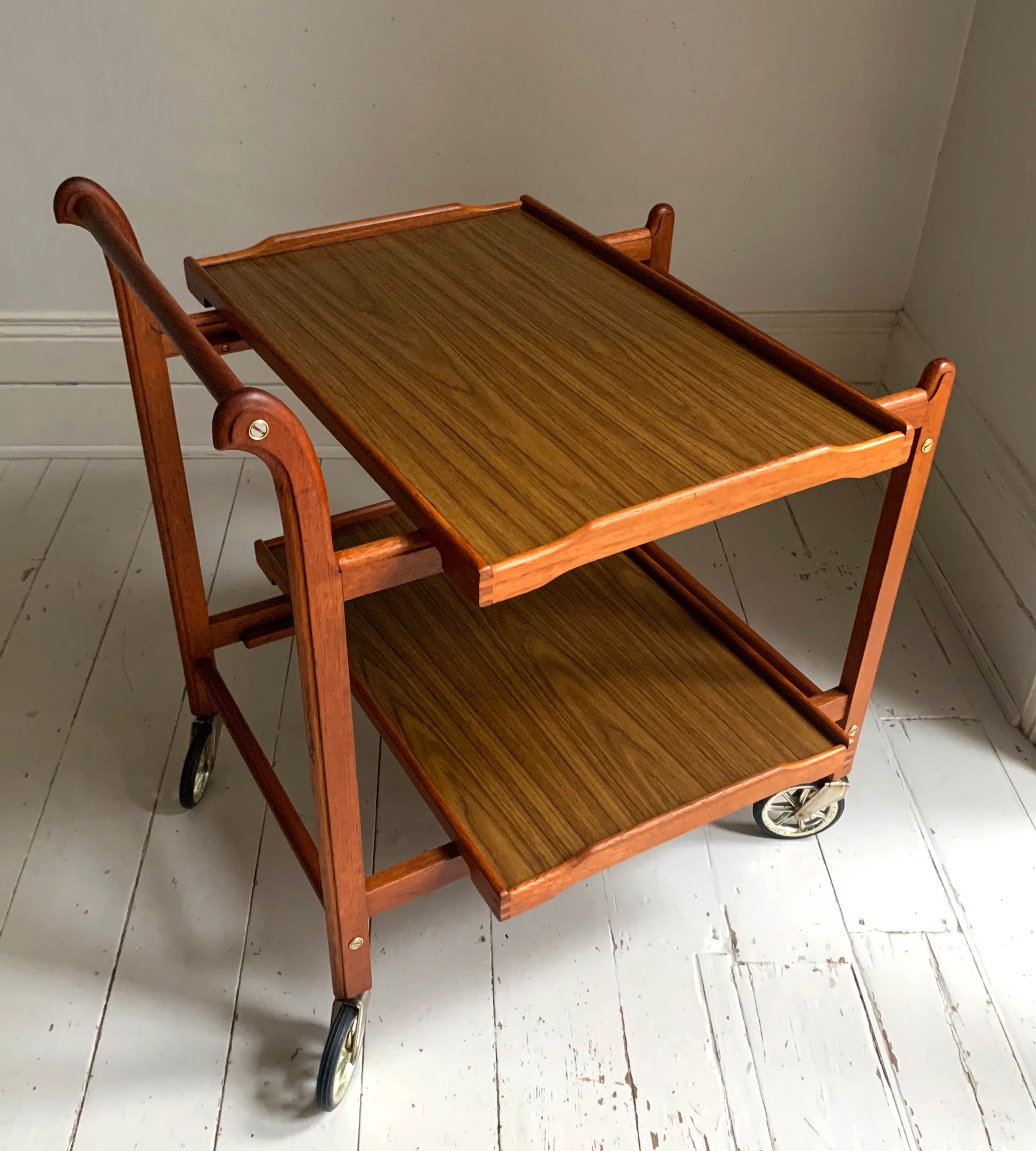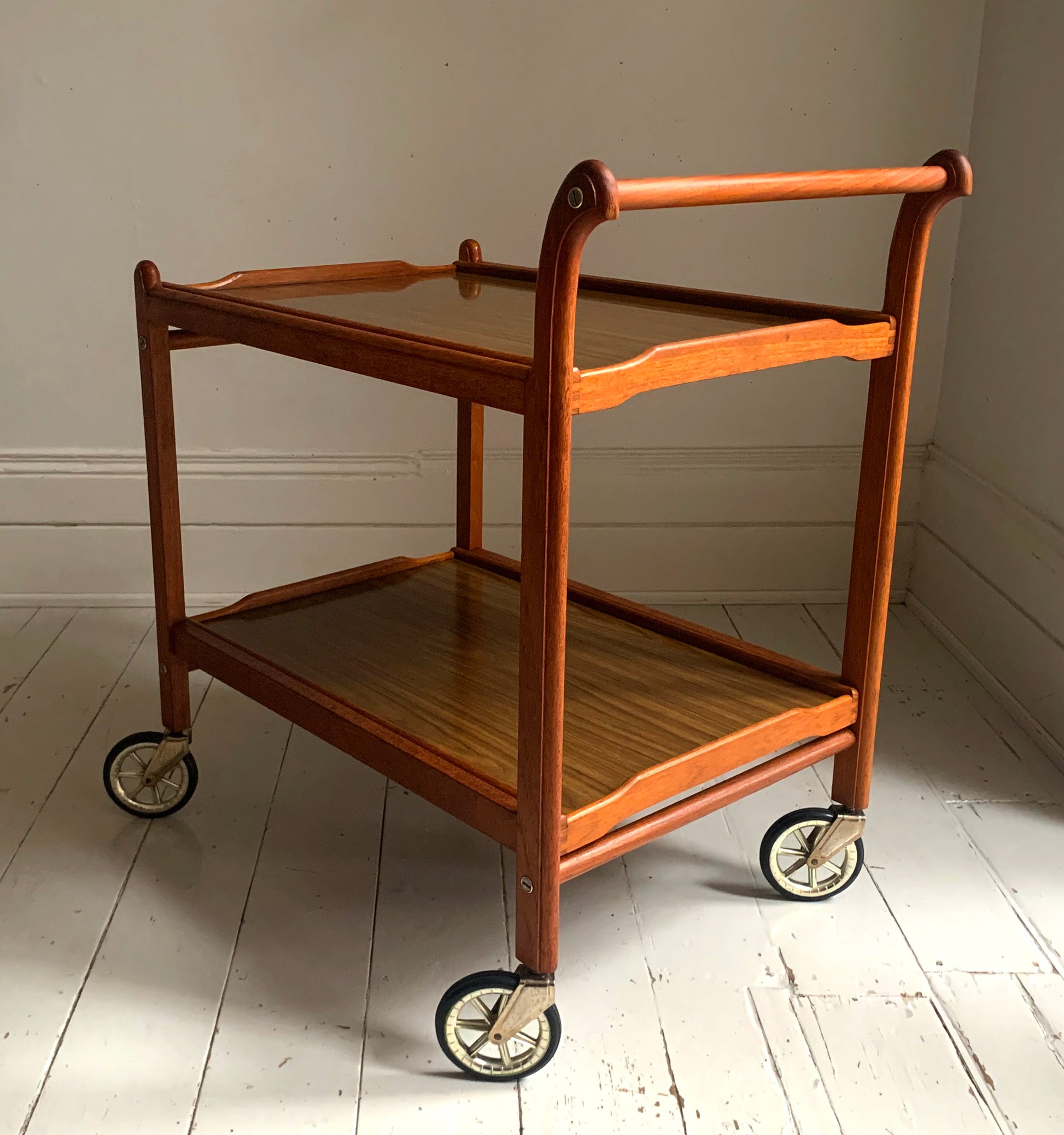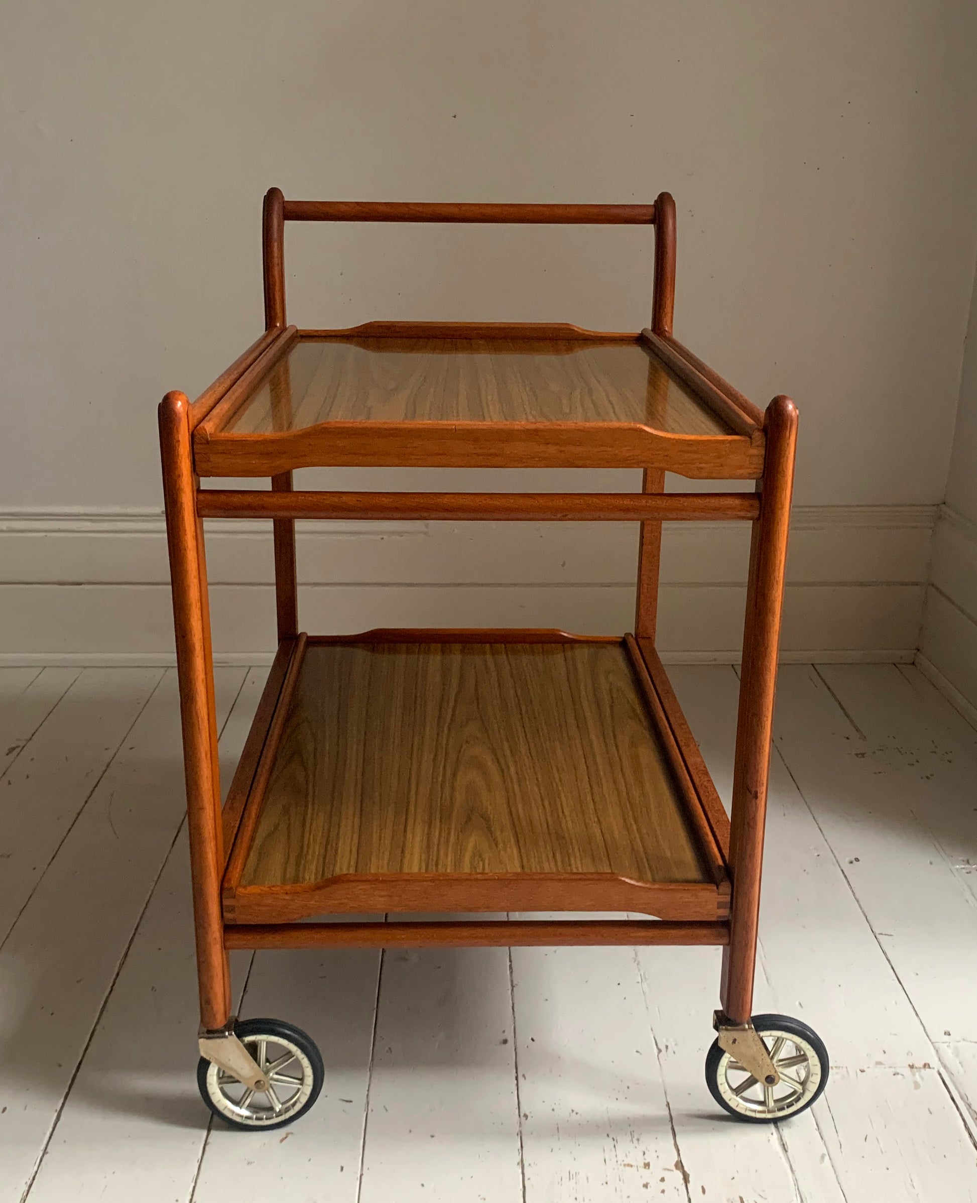 A fabulous vintage trolley with a teak frame and two removeable trays made from teak & Formica.