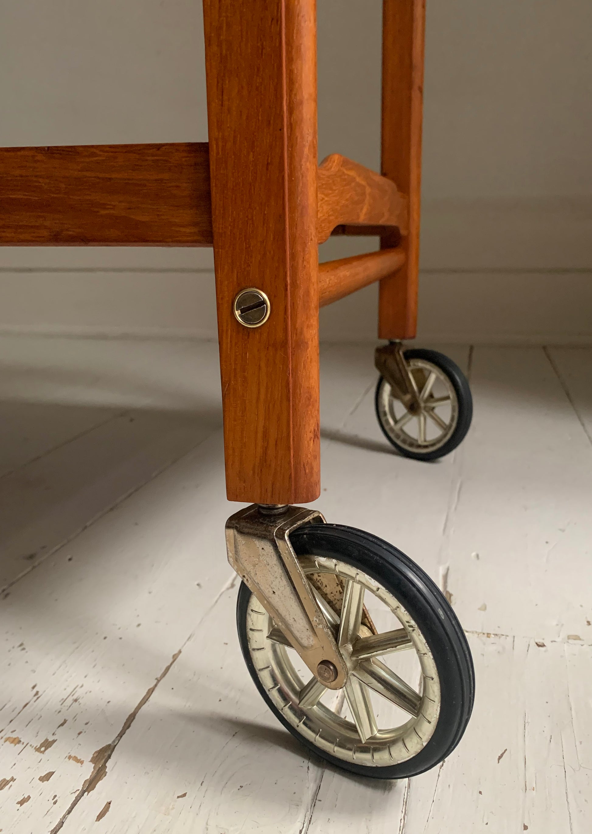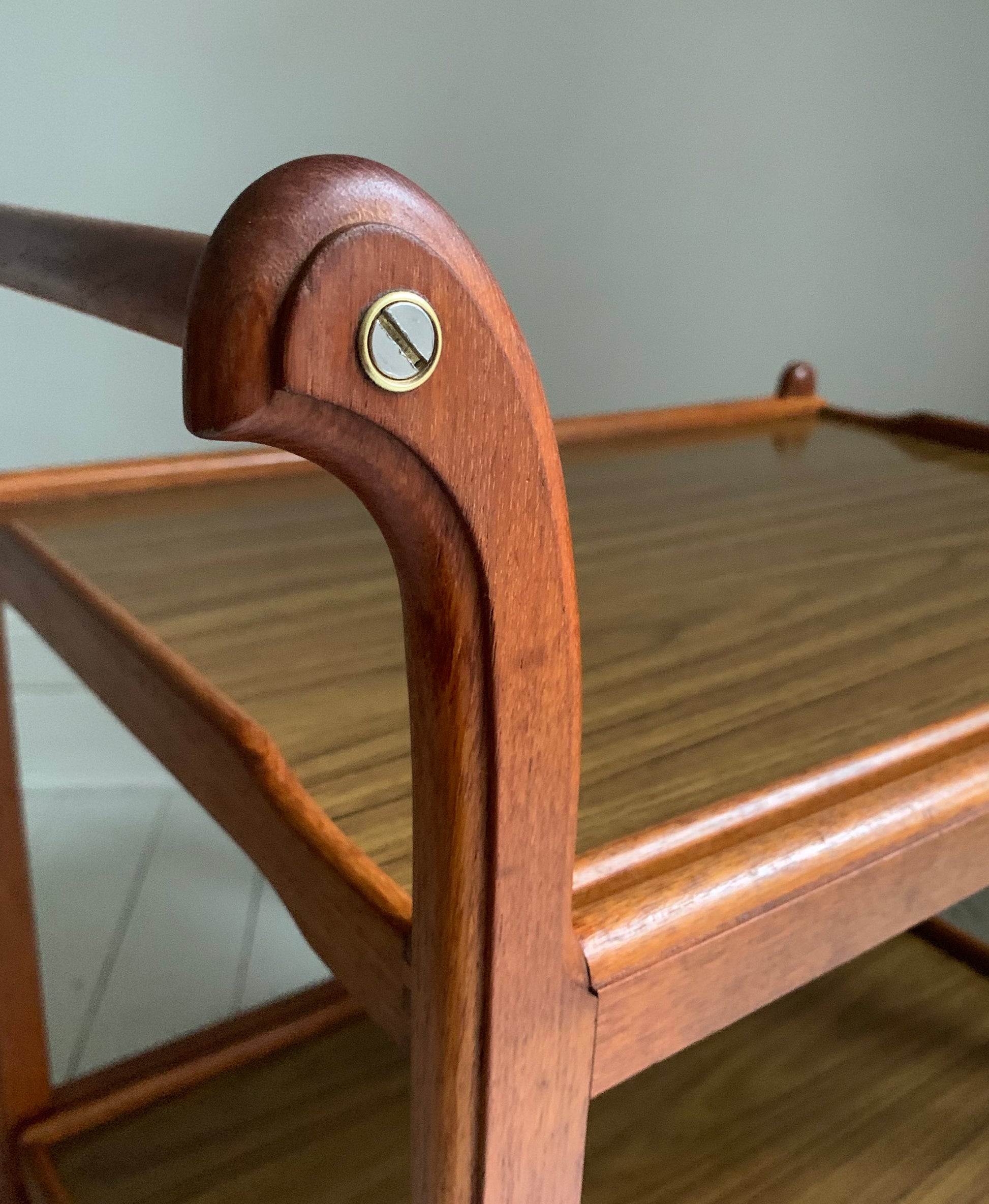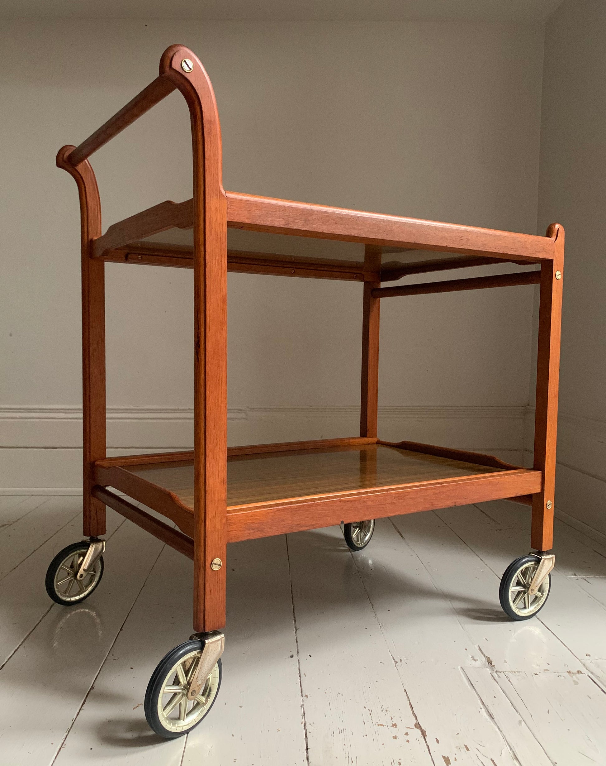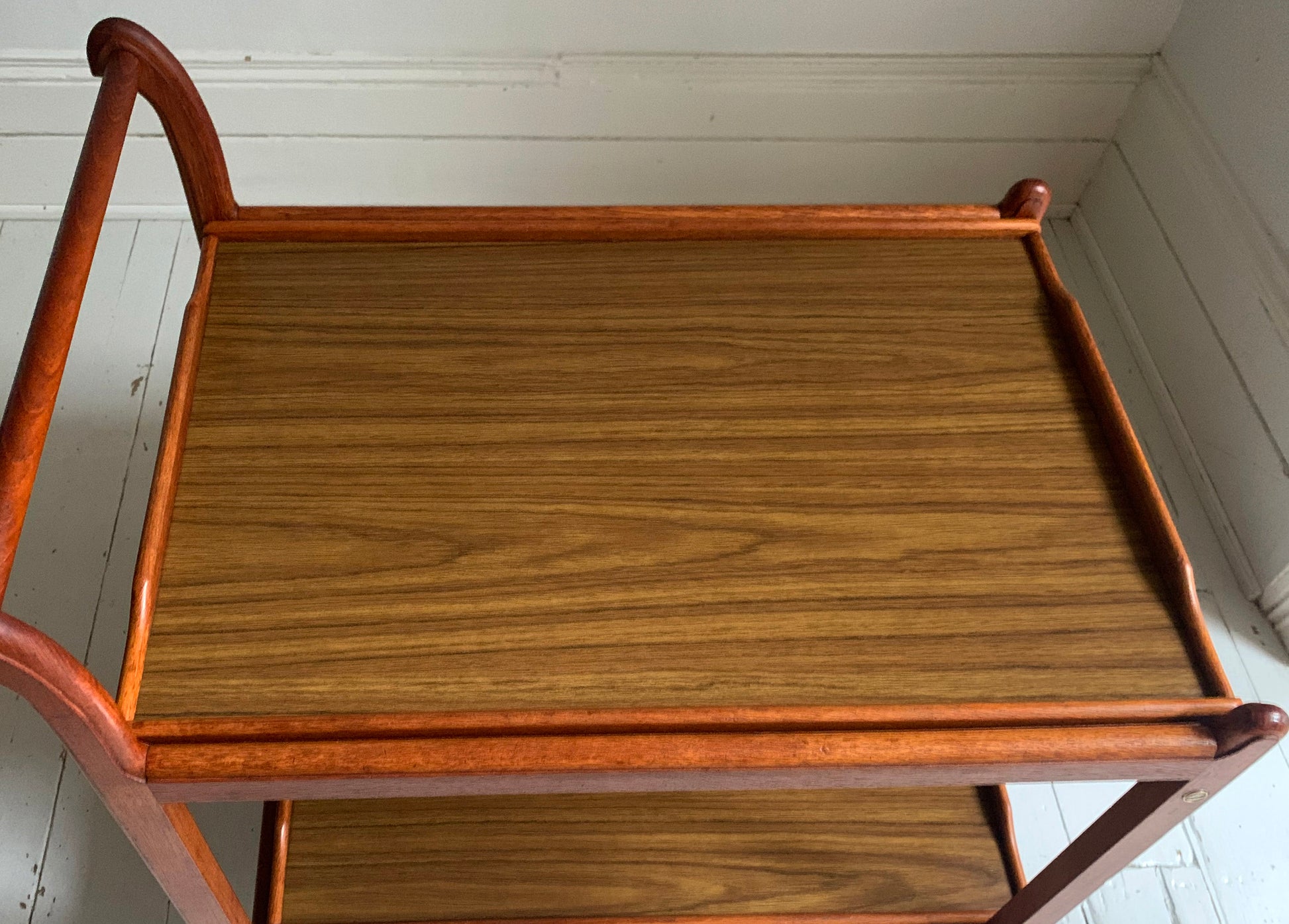 A fabulous vintage trolley with a teak frame and two removeable trays made from teak & Formica.