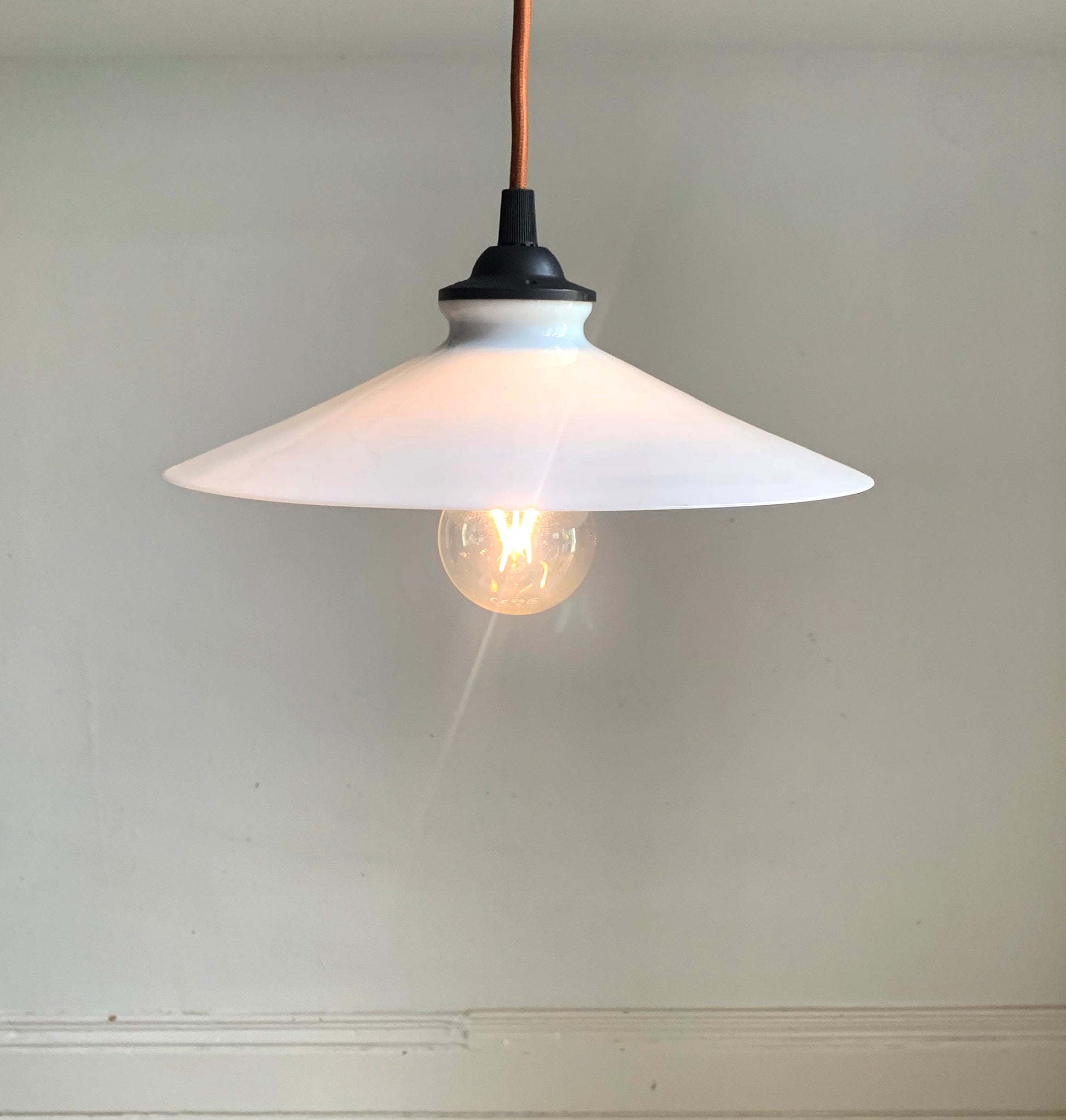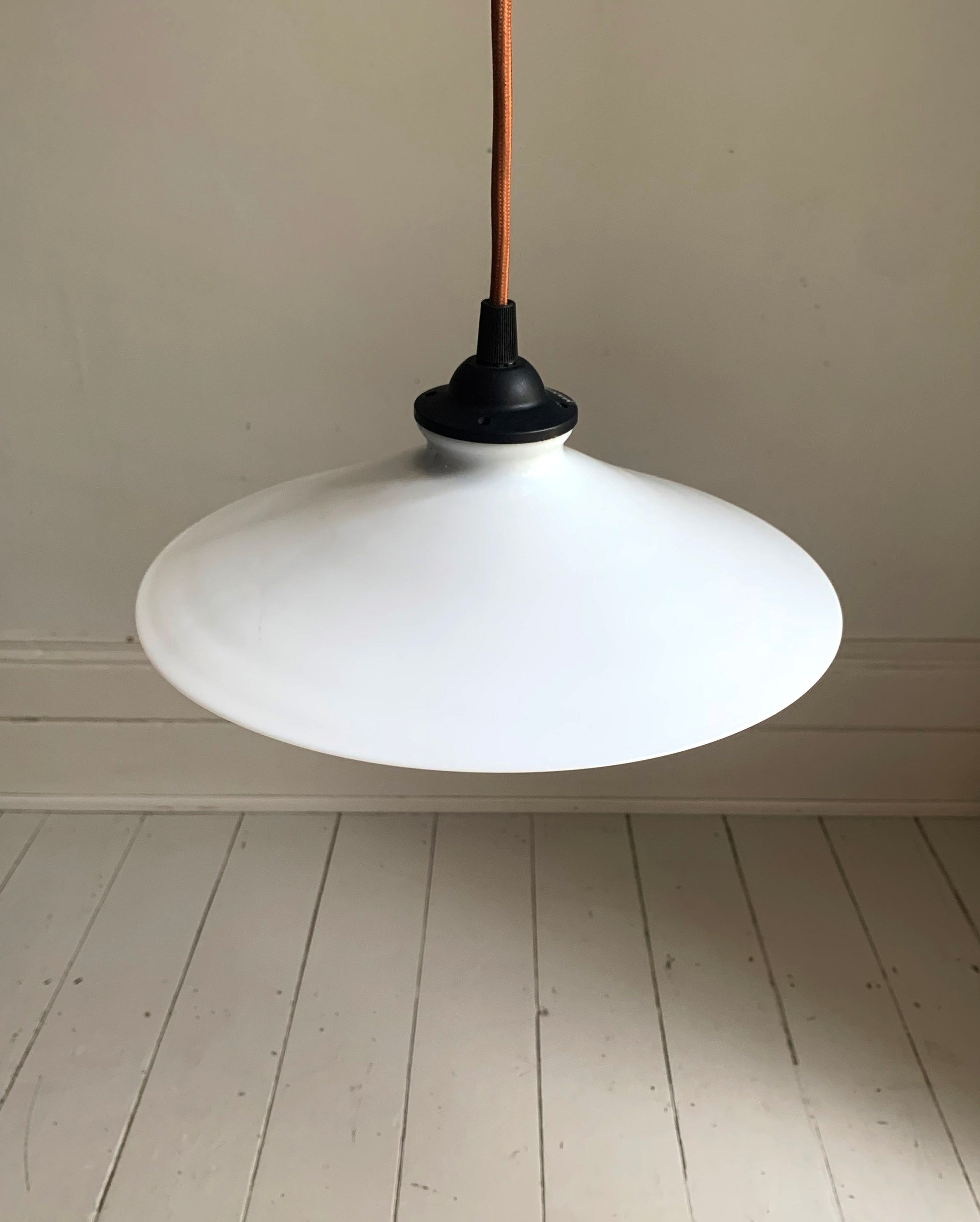 Vintage French Opaline Round Glass Ceiling Light Shade