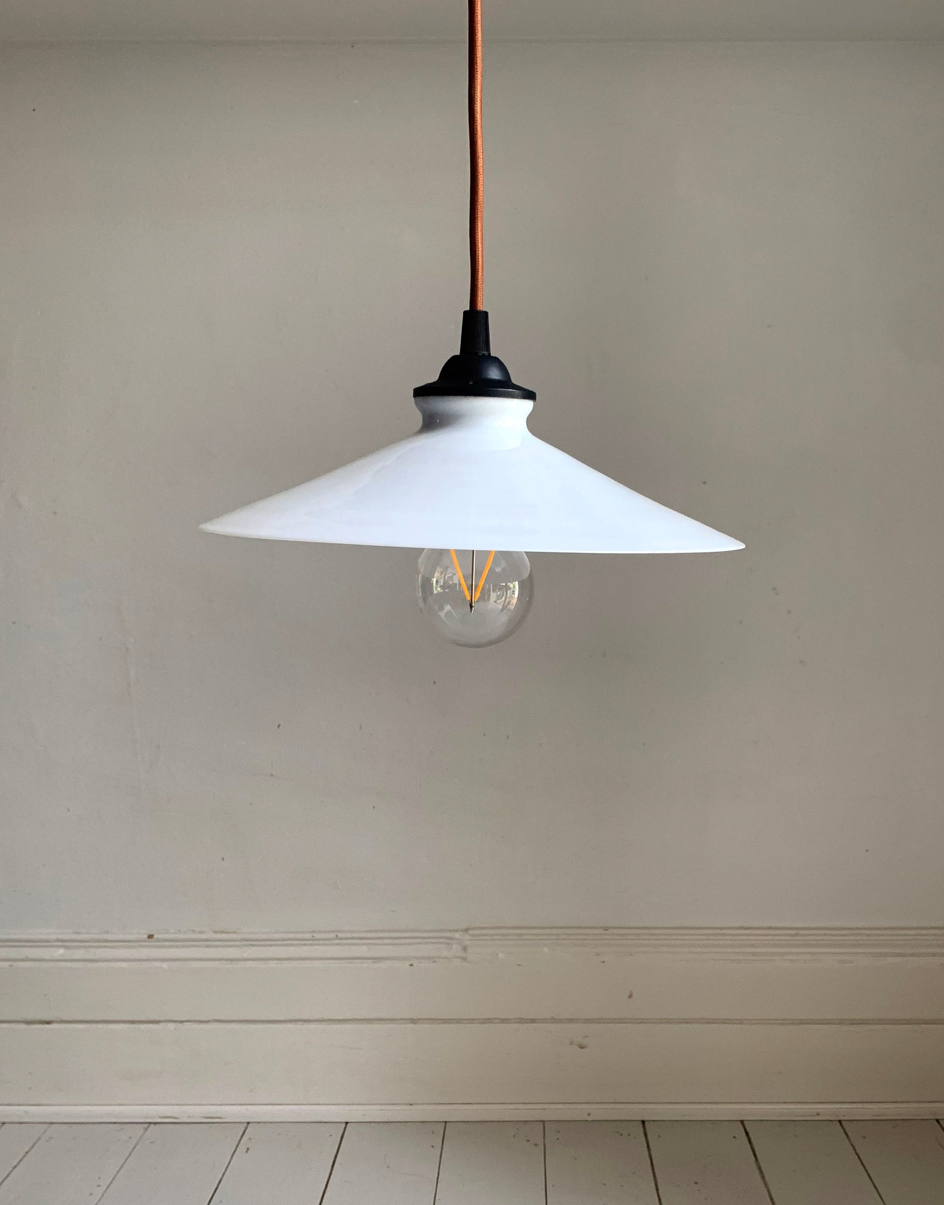 This vintage French Opaline Light shade is handmade and refined and elegant in its simplicity.
