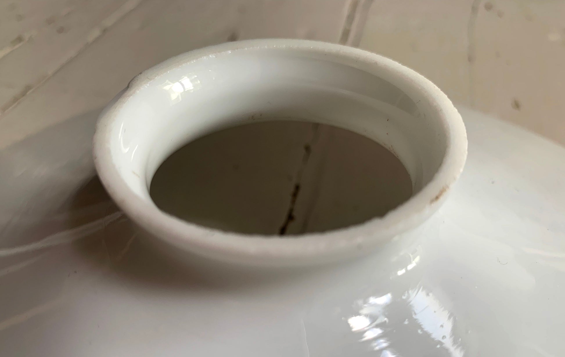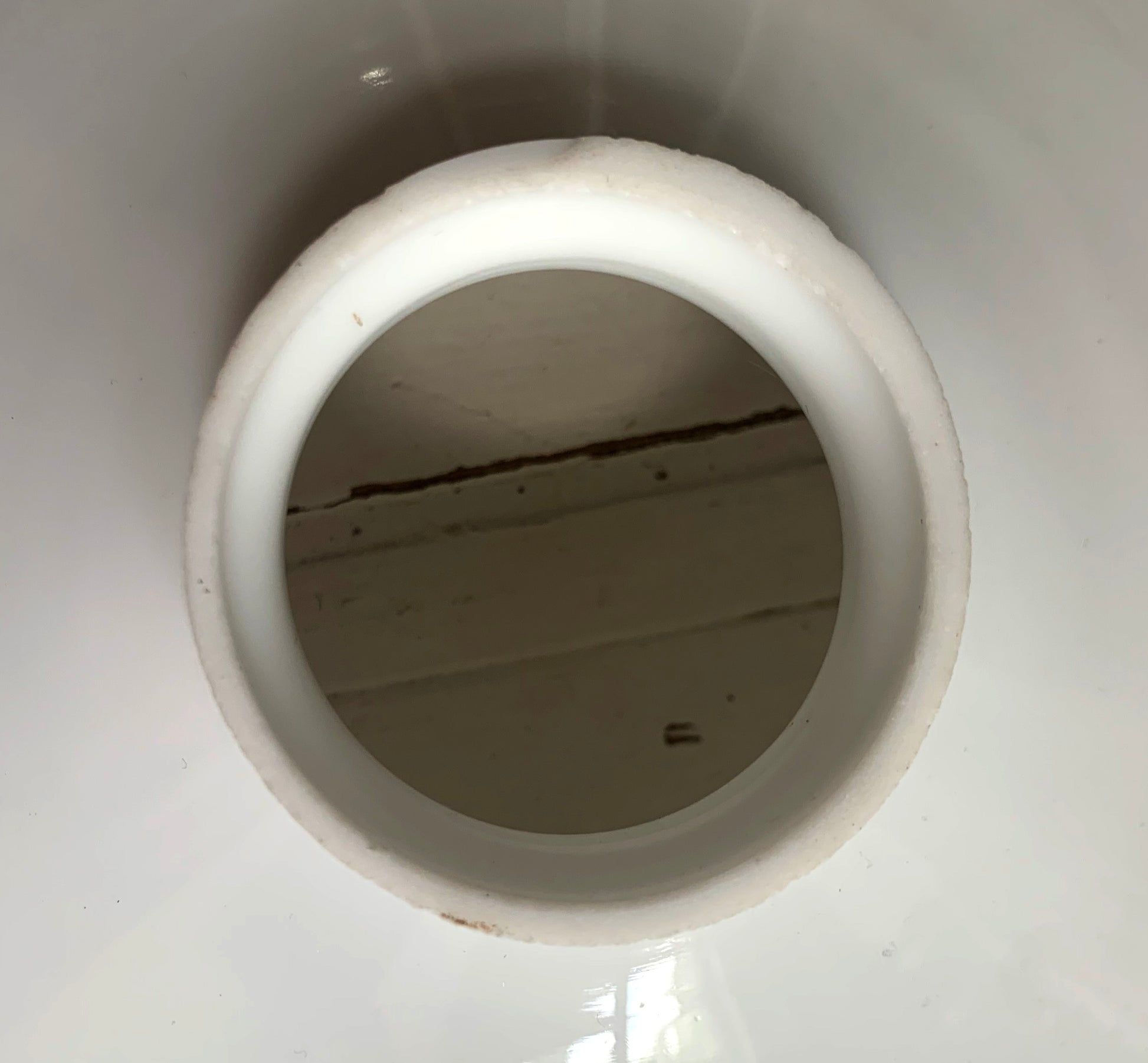 Please note there is a mark within the top of the glass shade, shown in the photos, that would have happened at the time of making, also around the neck aperture there are almost tiny nibbles within the glass which will have occurred over time; they do not show when the fittings are in place.