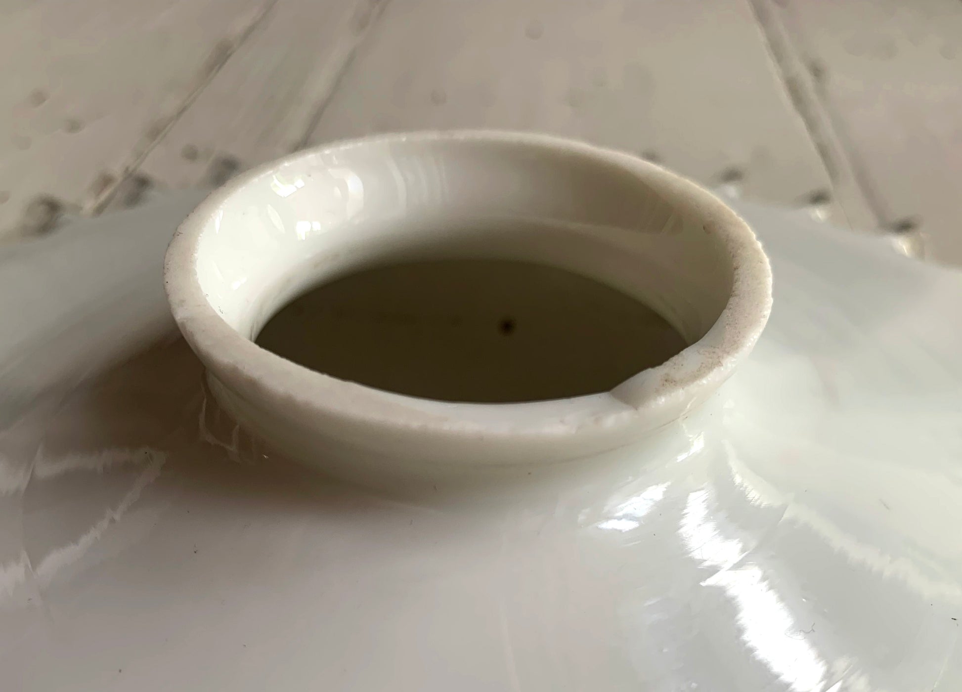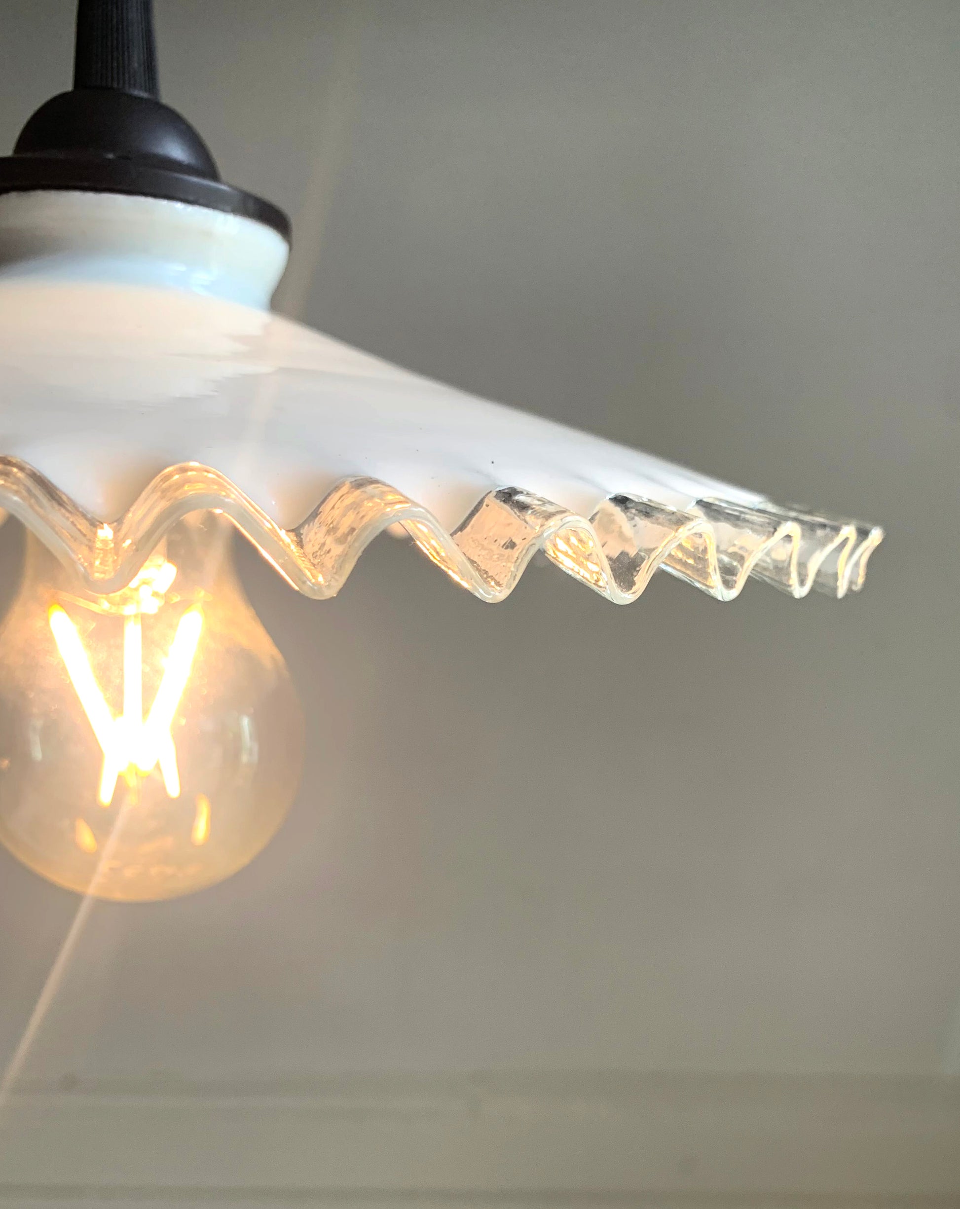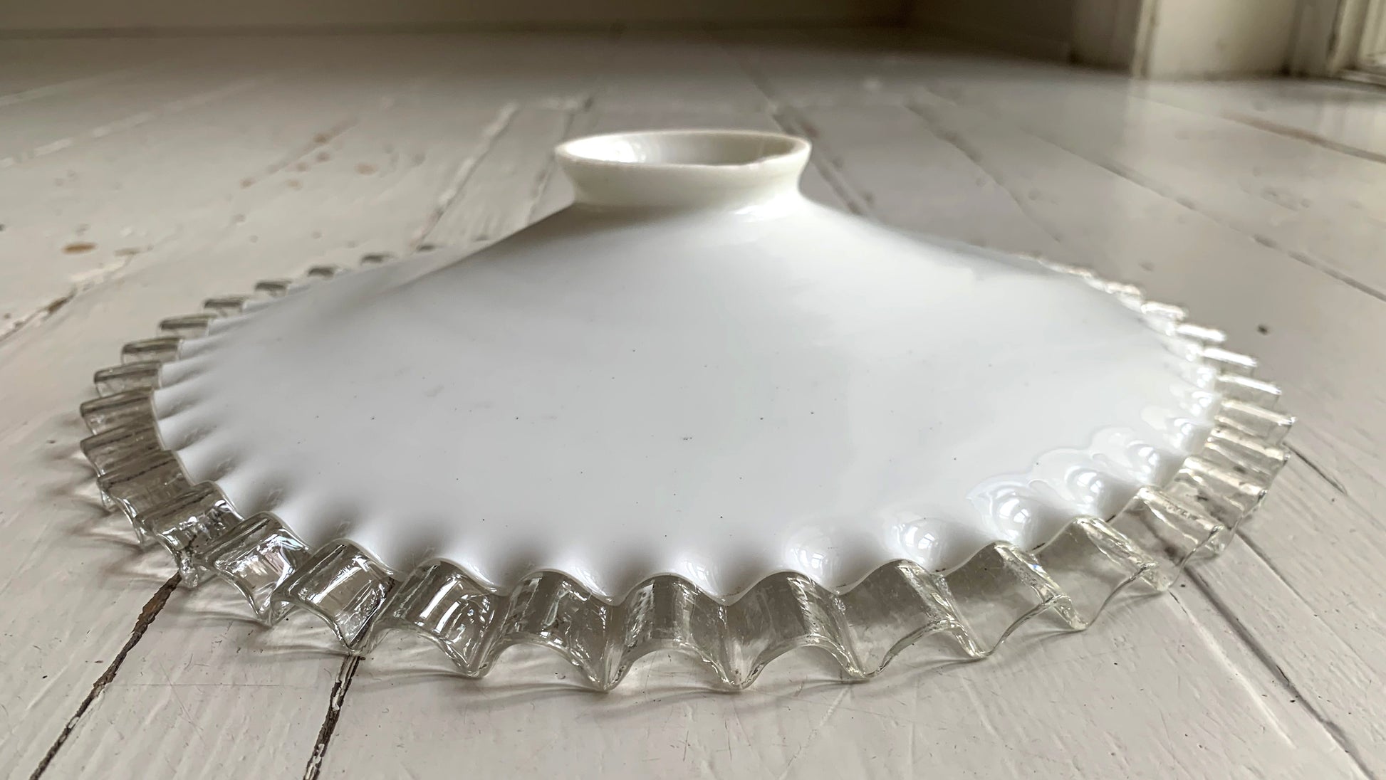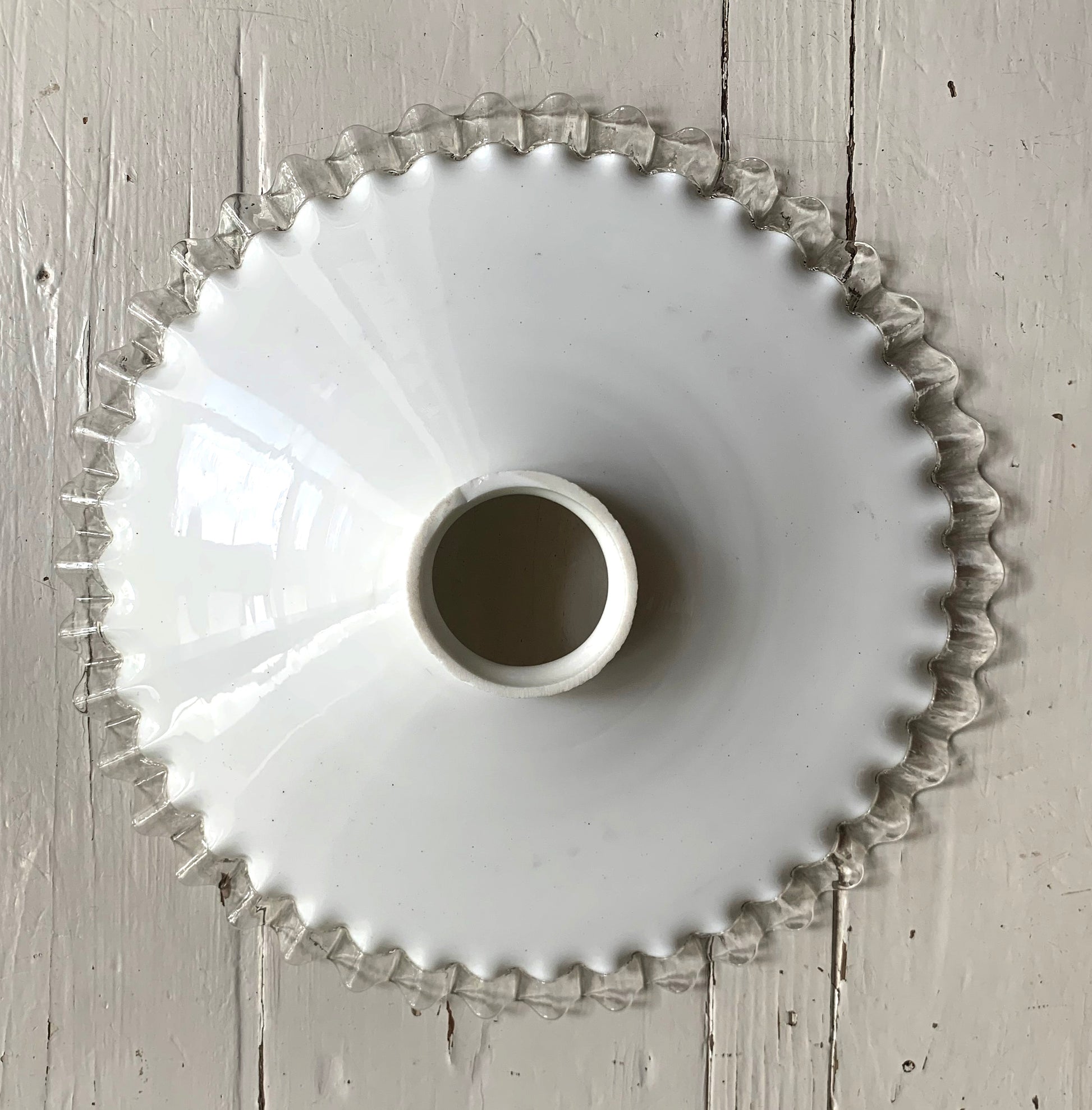 Vintage French Opaline Round Glass Ceiling Light Shade with Frilly Edge