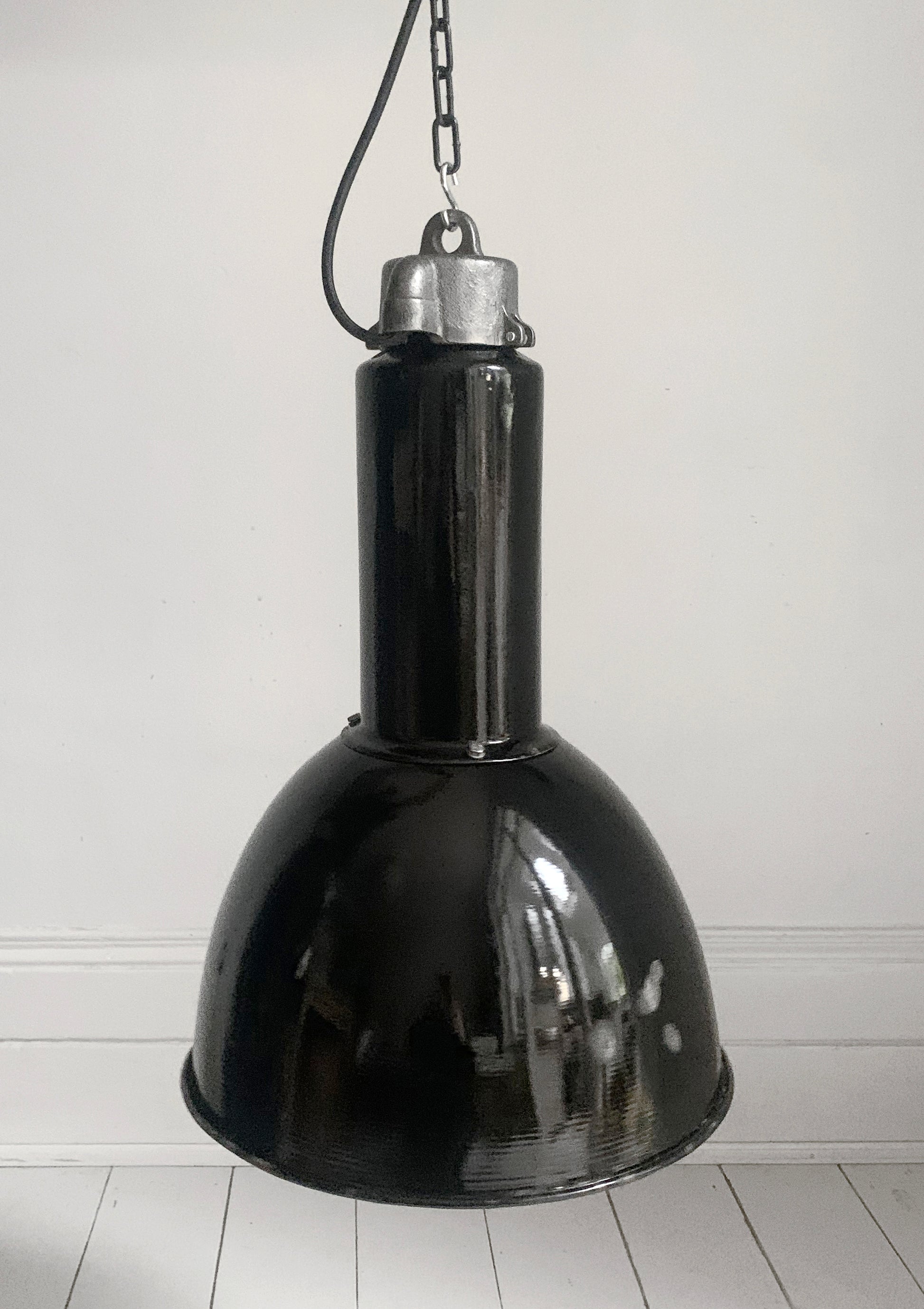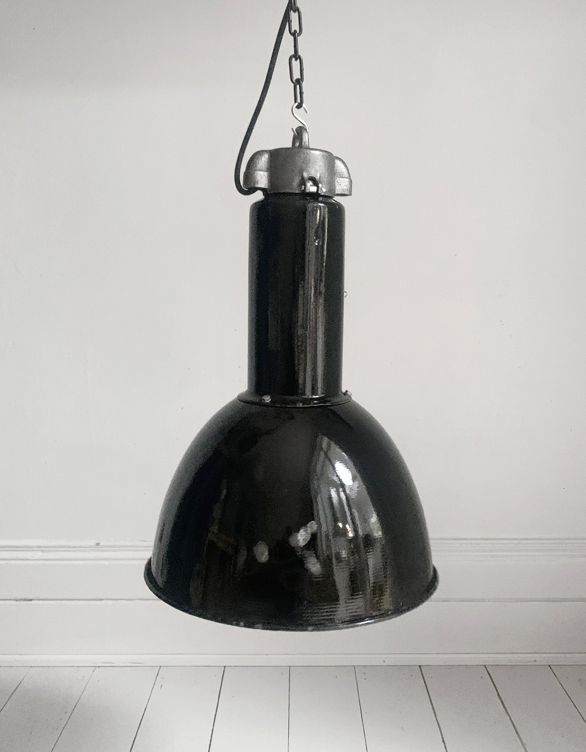 Vintage Industrial Black Enamel Pendant Lamp By Elektrosvit, 1950's / Soviet Era