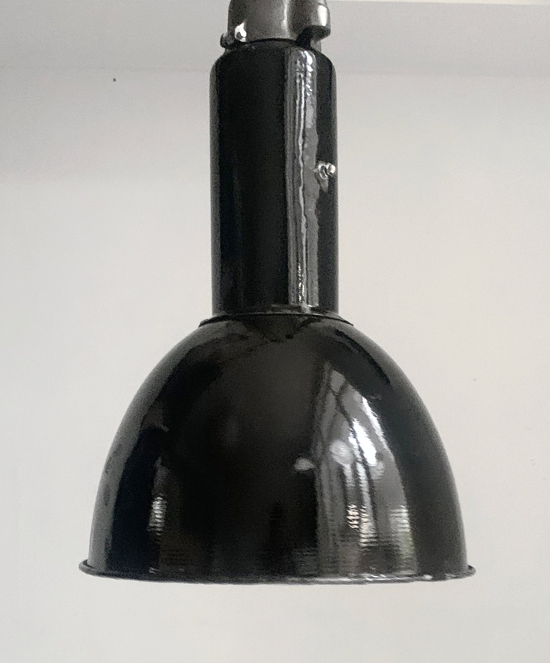 The light has been deep cleaned & polished, bolts replaced & tightened. The bulb holder and power cord have been replaced for new. It also comes with 50cm of hanging chain, plus ceiling hook.