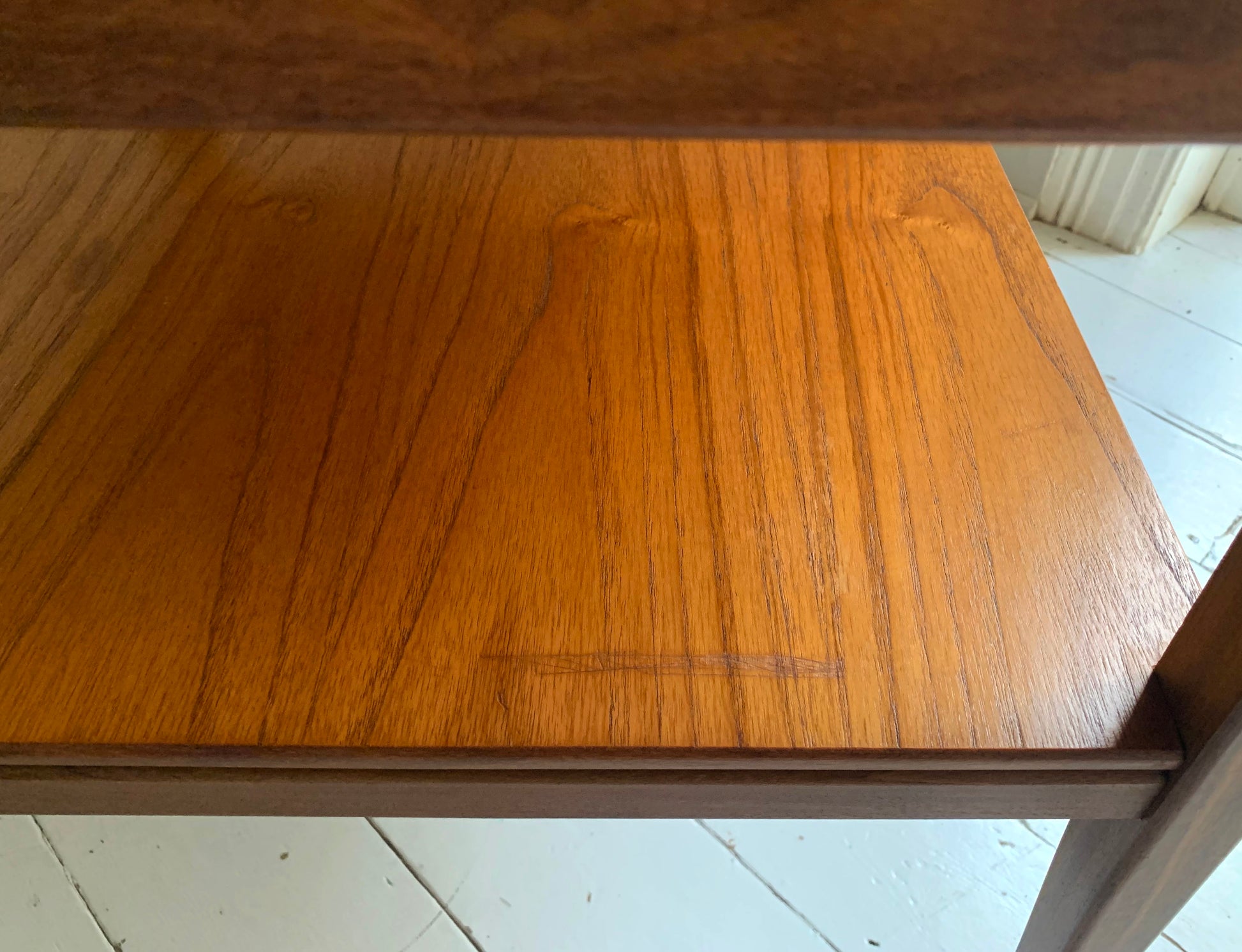 There are some small signs of wear on the trolley, where it has been knocked slightly on the legs, there are also some light surface scratches on the top shelf and slightly darker mark and a more noticeable scratch on the lower shelf - please see photos for more details, and do ask if you have any questions...