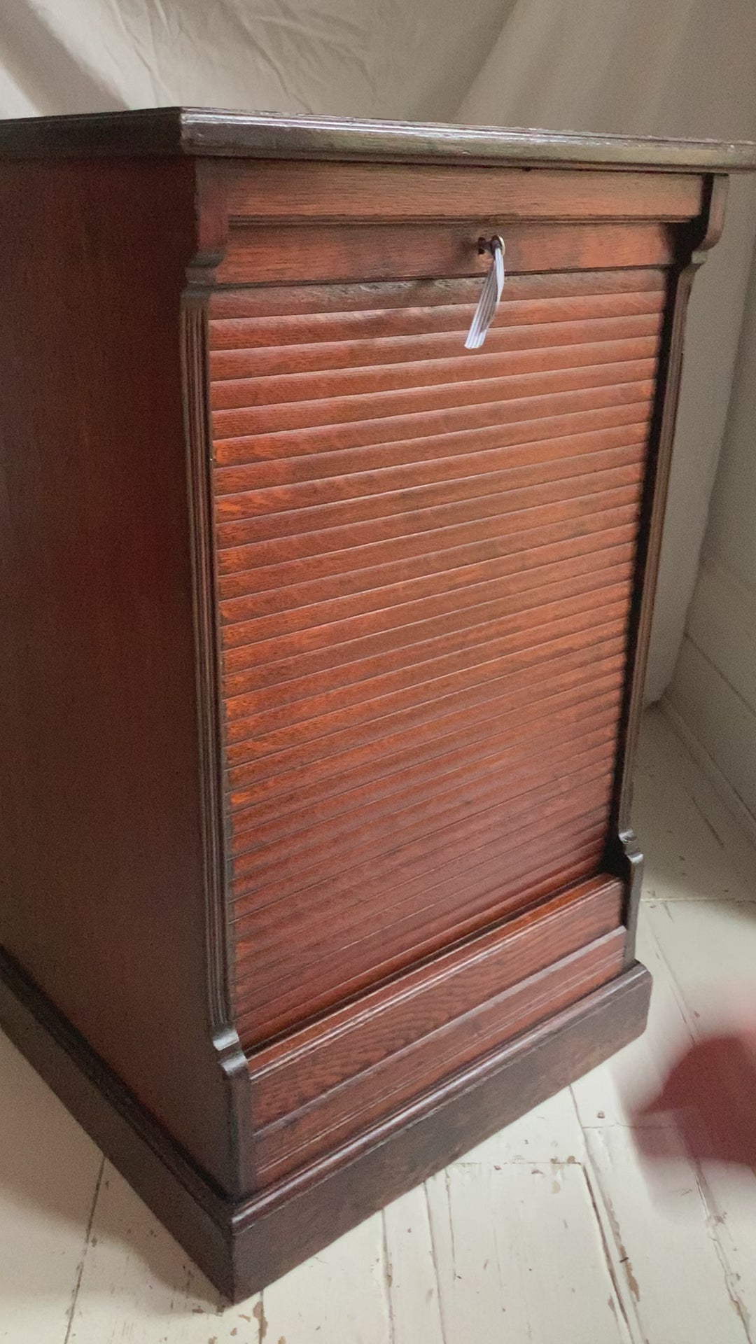 Vintage Oak Tambour Free Standing Filing Cabinet